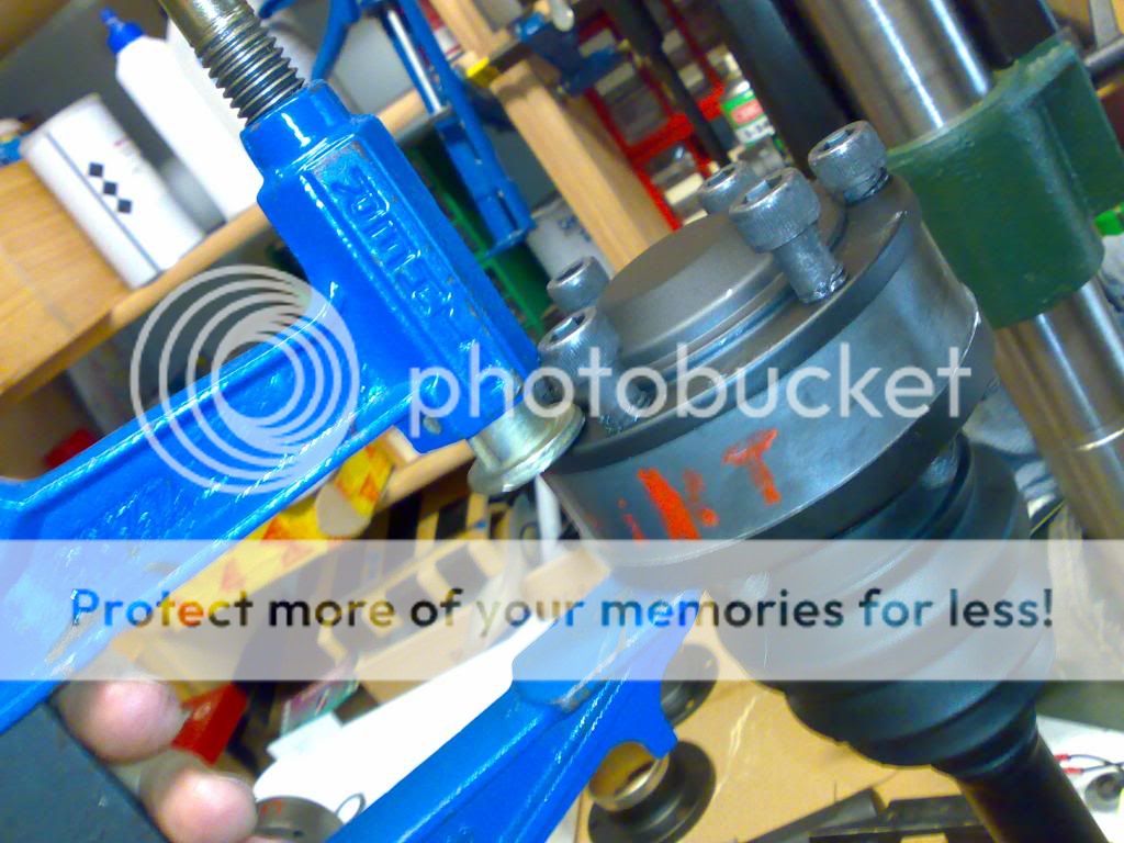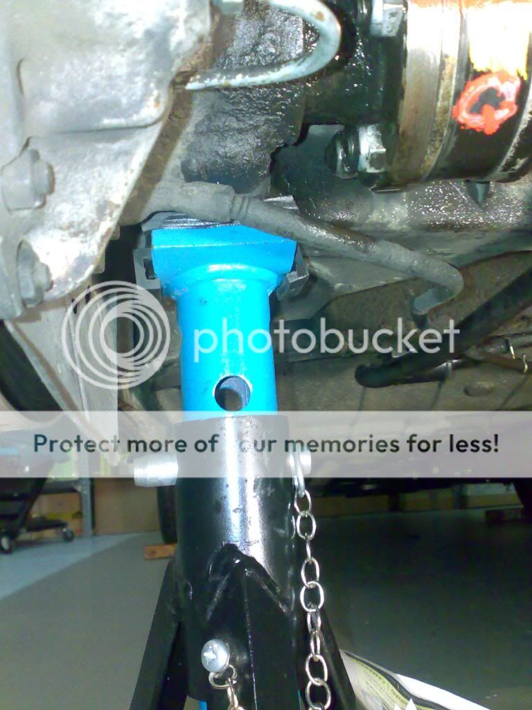 ...using the wheel support plate to position two supports, the jack you see in the center is only for a peculiar operation that is needed to remove the CV shafts once the bolts had been undone