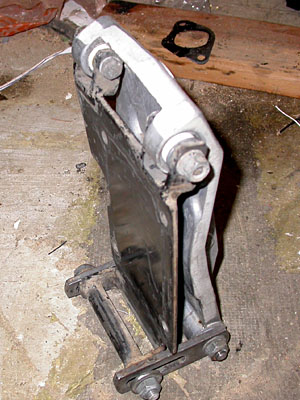 With the head off and the exhaust mainfolds out of the way, I had a good opportunity to fix the bracket. The bracket is mounted to the engine block with three screws and to the compressor with four screws. In addition, there is a ground wire connecting both halves of the bracket. The bracket can be removed without disconnecting the A/C lines, but you do need skinny hands to get the screws back in when remounting it.
