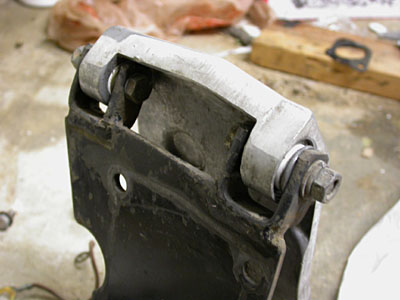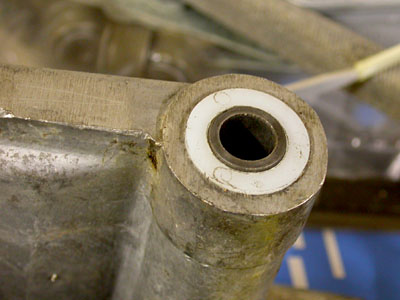I found some nylon spacers the had the correct OD to fit in the aluminum bracket and I drilled out the ID to accept the inner sleeve of the old bushing.