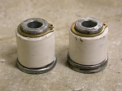 The lower bushings are made of two steel sleeves with rubber between them. Over time, the rubber has oozed out of my bushings leaving just the steel sleeves rattling around.