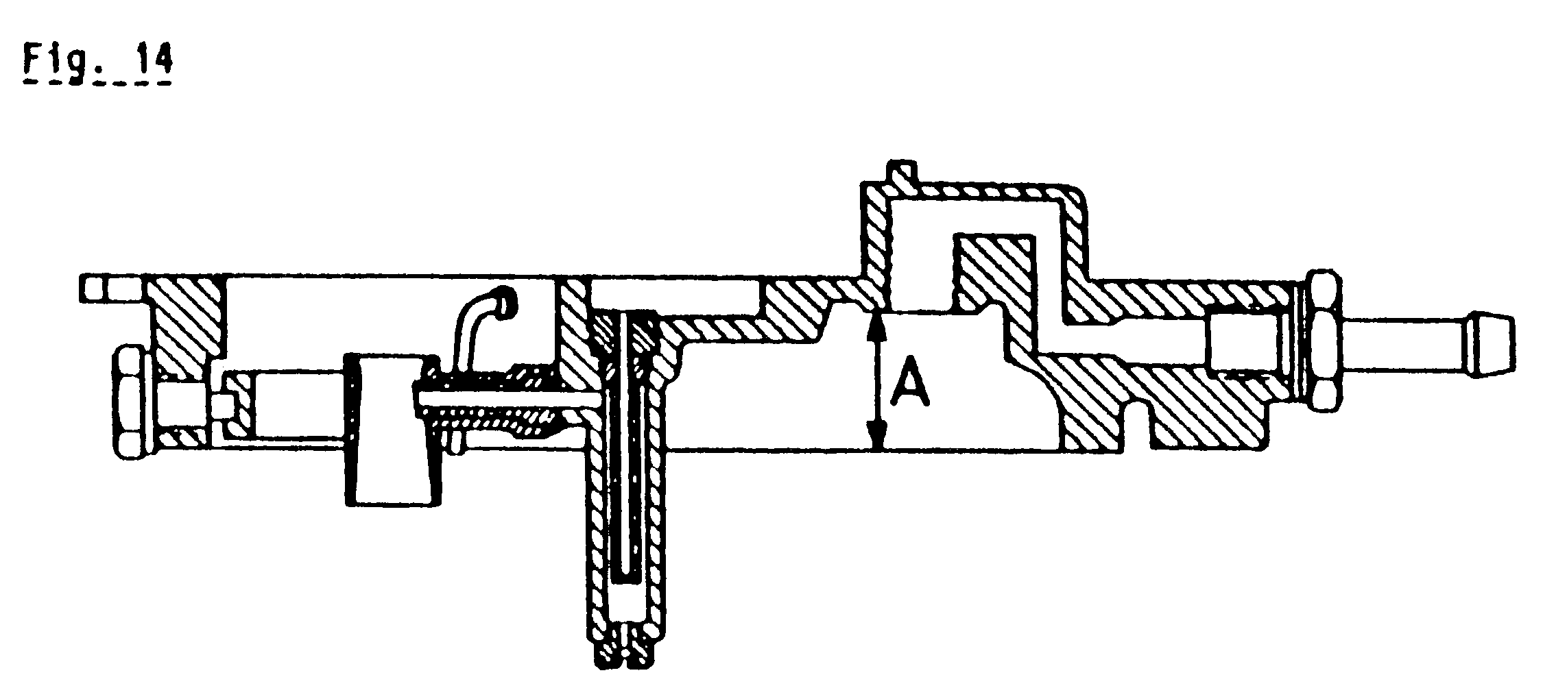 to the contact face of the float needle valve (without gasket) (Fig. 14).