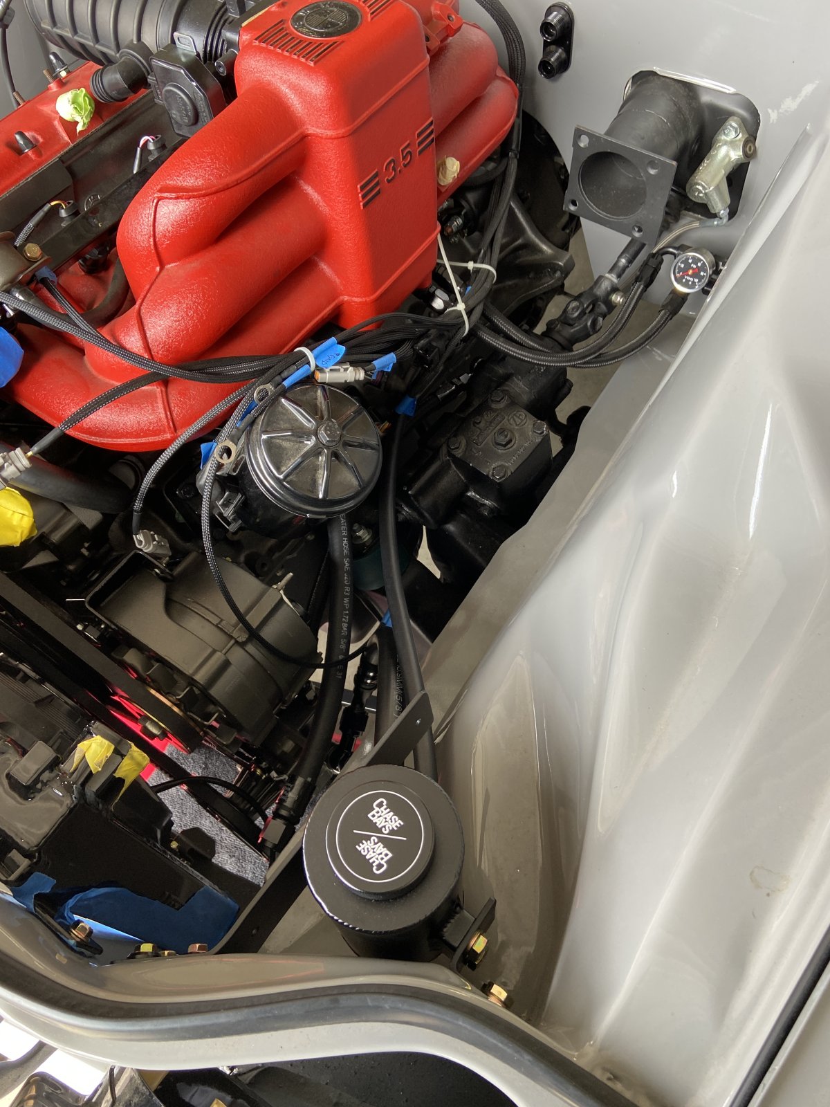 Coming together... fuel pressure gauge mounted to the lines, an hoses running to the fuel rail, wiring mostly in place. I redid the fuel lines under the car as well... all new NiCp lines.