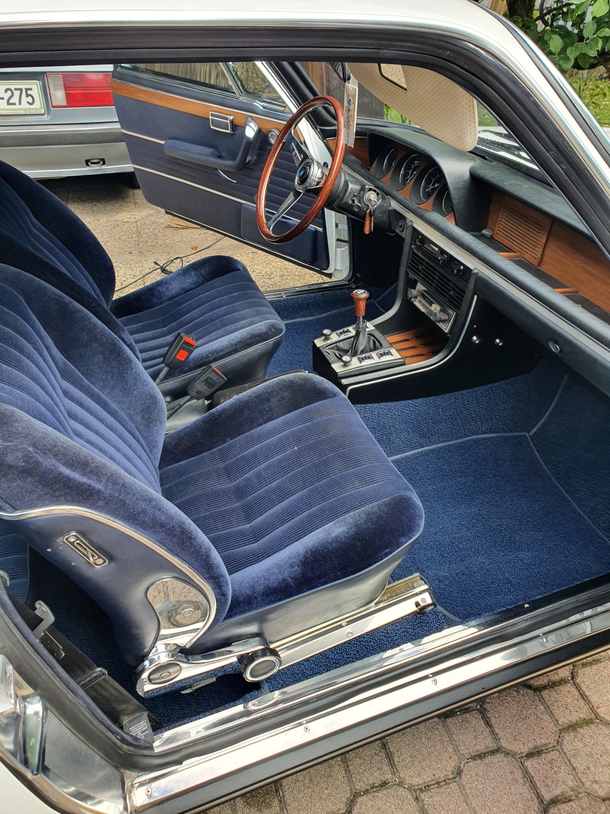 Perhaps I'm mis-reading/seeing, but I think it butts the center piece like yours does...its the same leather or vinyl color on the back "hat tray" as the center piece, but the seat inserts are cloth, and contrast...so it looks like it melds together. Or maybe it does