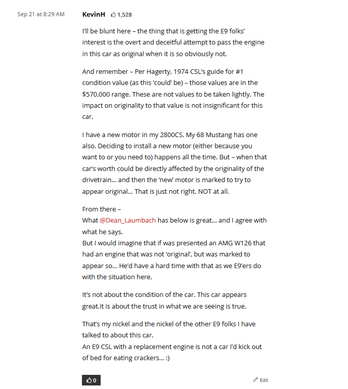 E9coupe.com is in my opinion the best technical and expertise resource, and community that exists for any classic marque. Yet again proven with the input provided during this BAT CSL sale. (Not an E9 lynch mob as someone posted)
