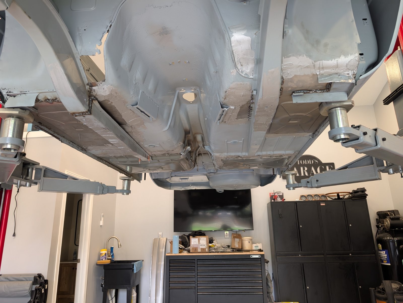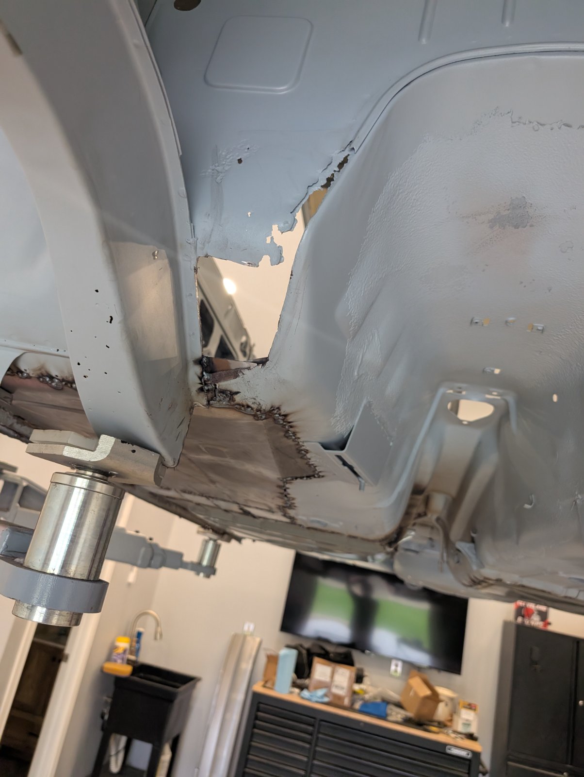 Lots of small holes back there to weld up... Took a long time.