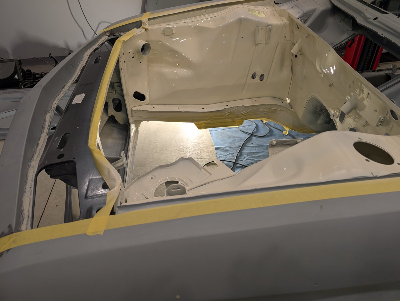 So I cut in the engine bay, inner fenders etc. yes.. this makes the rest of the body work a bit harder but masking plastic and tape are on hand.