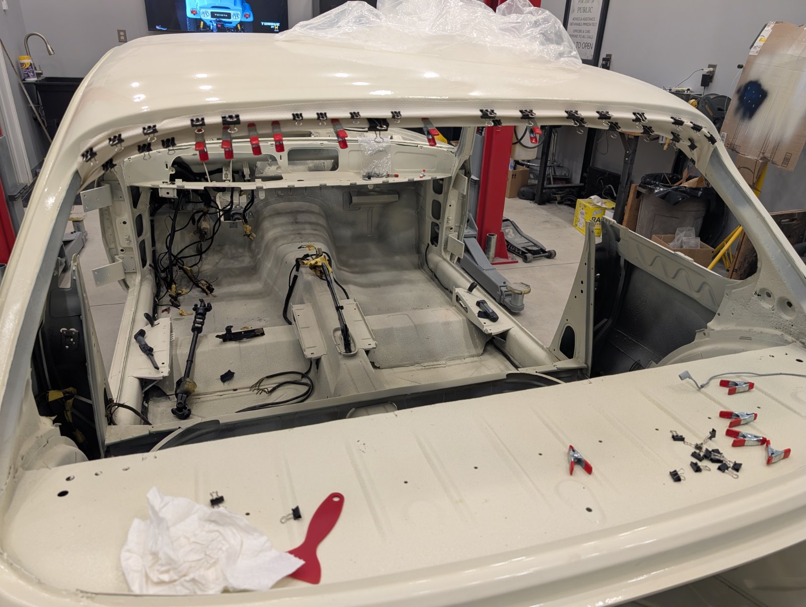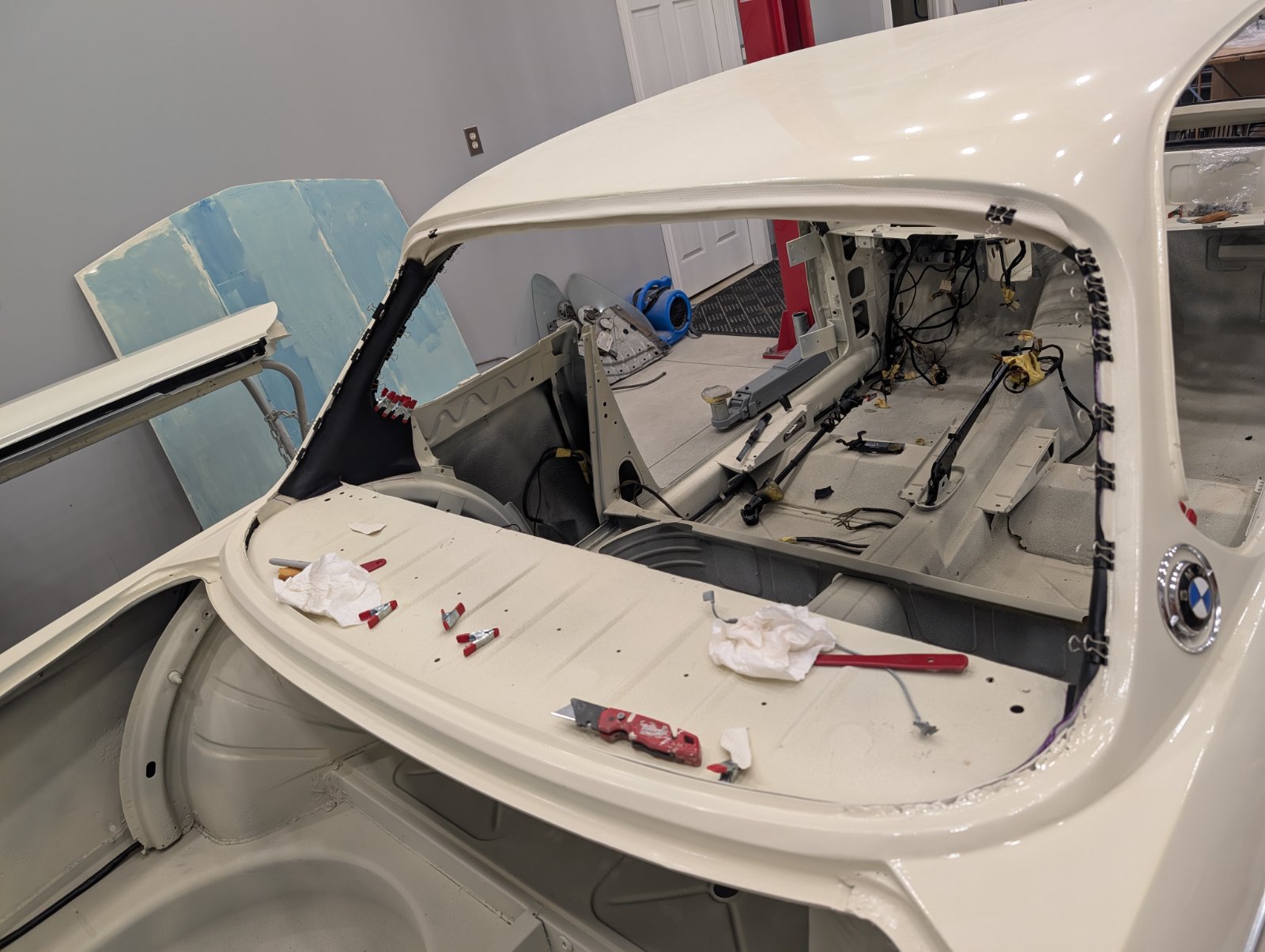 Humming right along…. I guess. Doing a bunch of stuff I guess out of order but I was waiting on a bunch of seals and others parts… still waiting on some other parts. Most notably the molded part of the headliner. Mine was cracked in half.