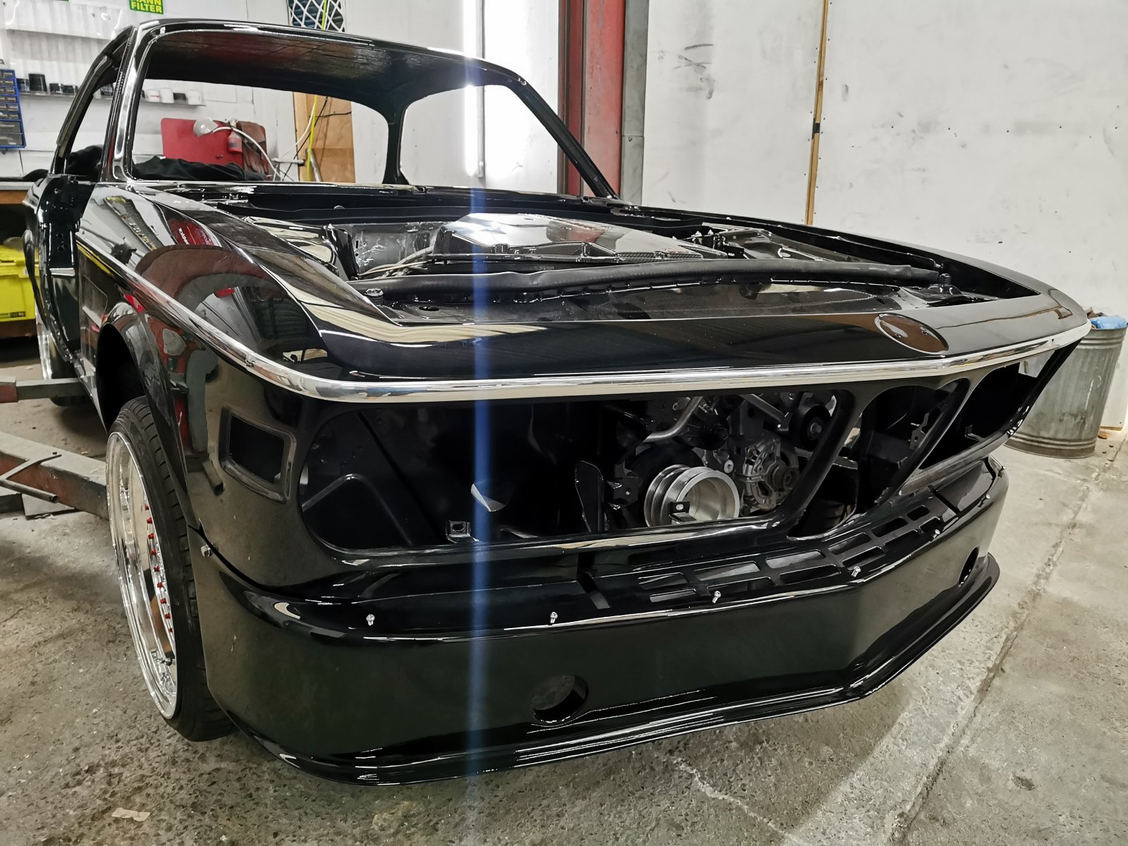 Went up to the North over the holiday period and started fitting in the wiring harness to a friend's supercharged s62 powered e9. Lots of goodies on this. E28 rear end, e36 m3 front end and rack + pinion conversion.