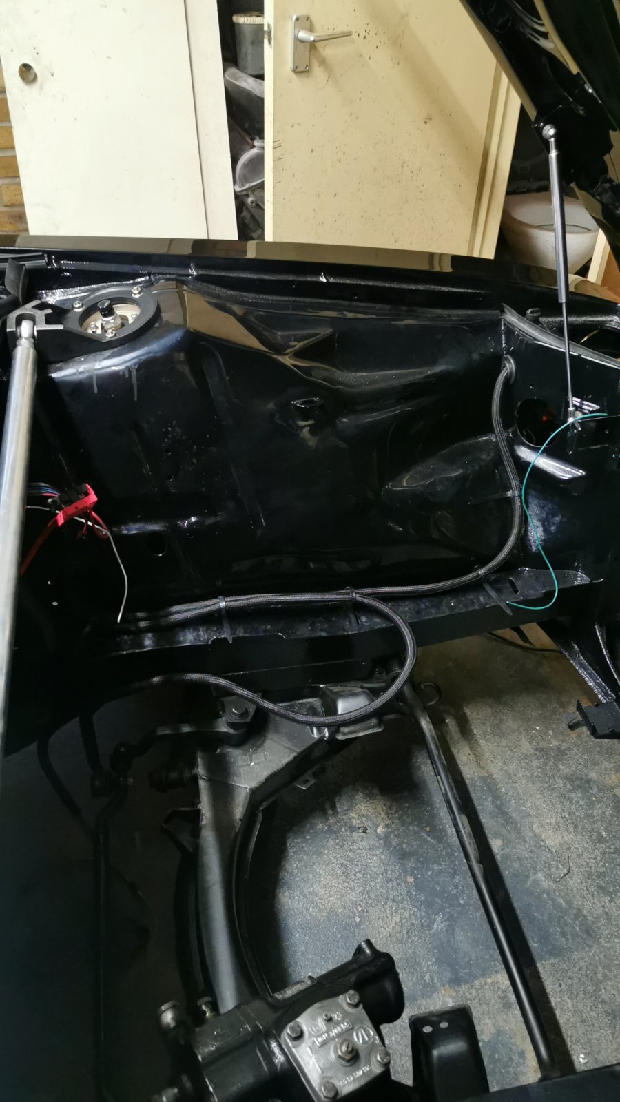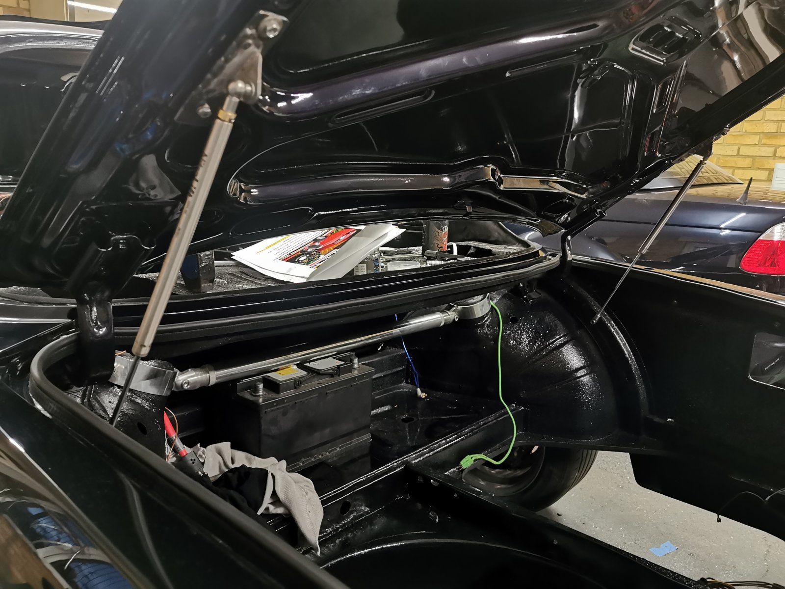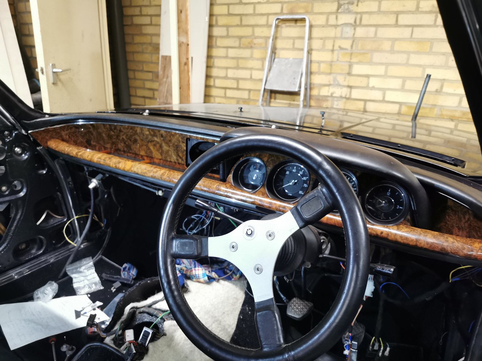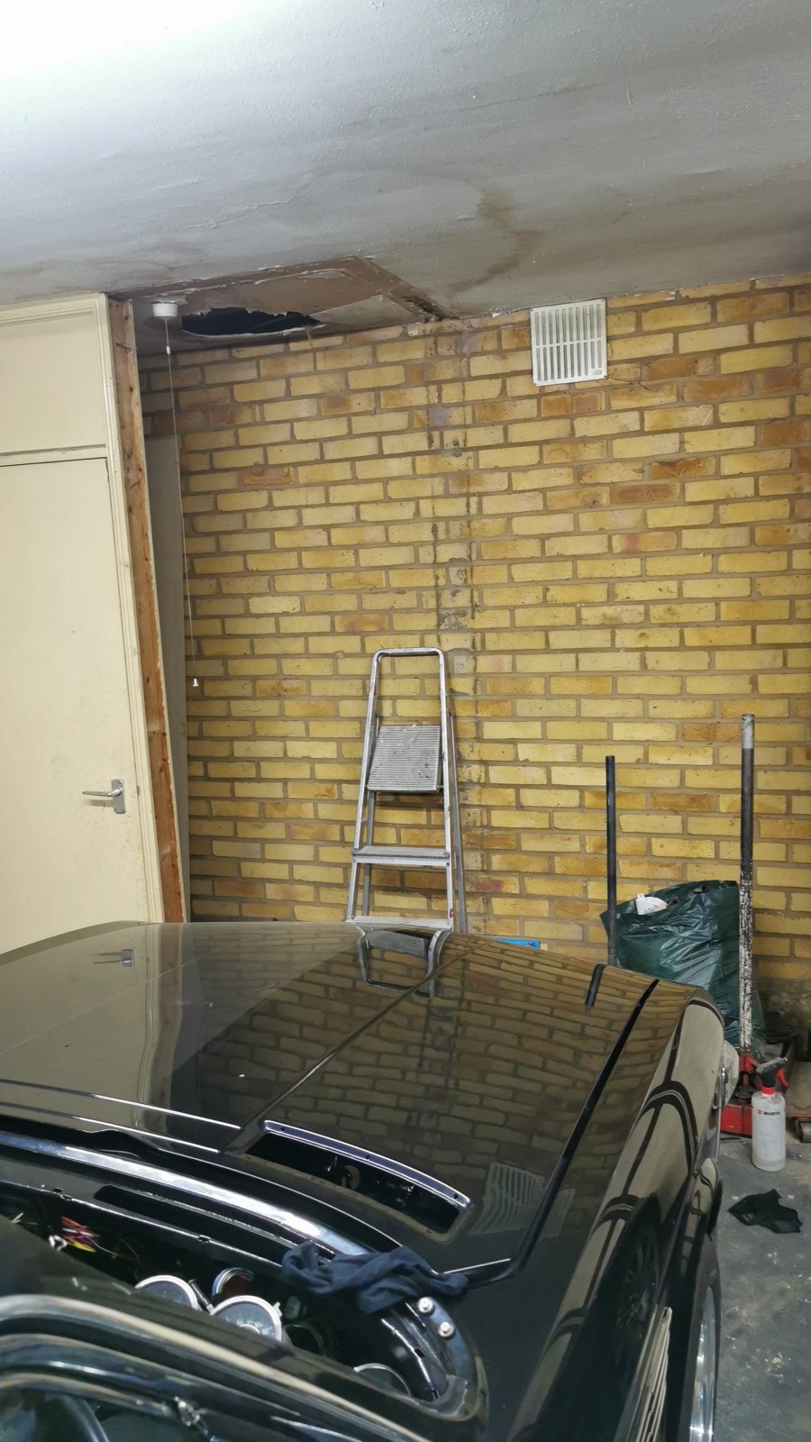 Garage space is limited to the point that with the e24 behind it there was no way other than constantly having the car up in the air to store it with bumpers on. So this weekend has consisted of knocking down the bathroom wall in order to get the thing to actually fit in here. Need to fix up the roof a bit and put some new plaster on the ceiling before I do much more with the car