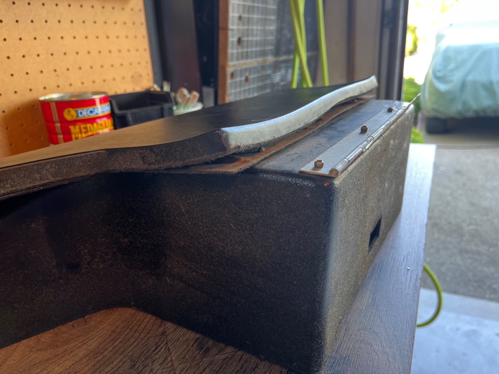Took out glove box to re-flock it. Before do that I would like to fix the bottom. See pictures. Recommendations for glue? Also any updated recommendations for flock?