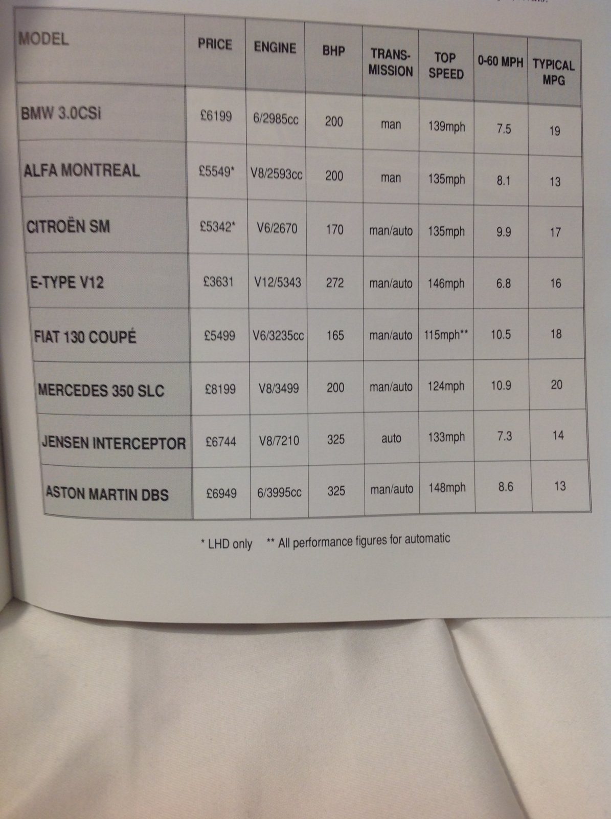 That list jogged my memory. My uncle bought his Interceptor III in late 73, from memory paid around £7500 and was torn between that and the AC Frua Coupe. CSL in the UK was a similar price IIRC at the time. Sold a house and put money on top to buy that car!