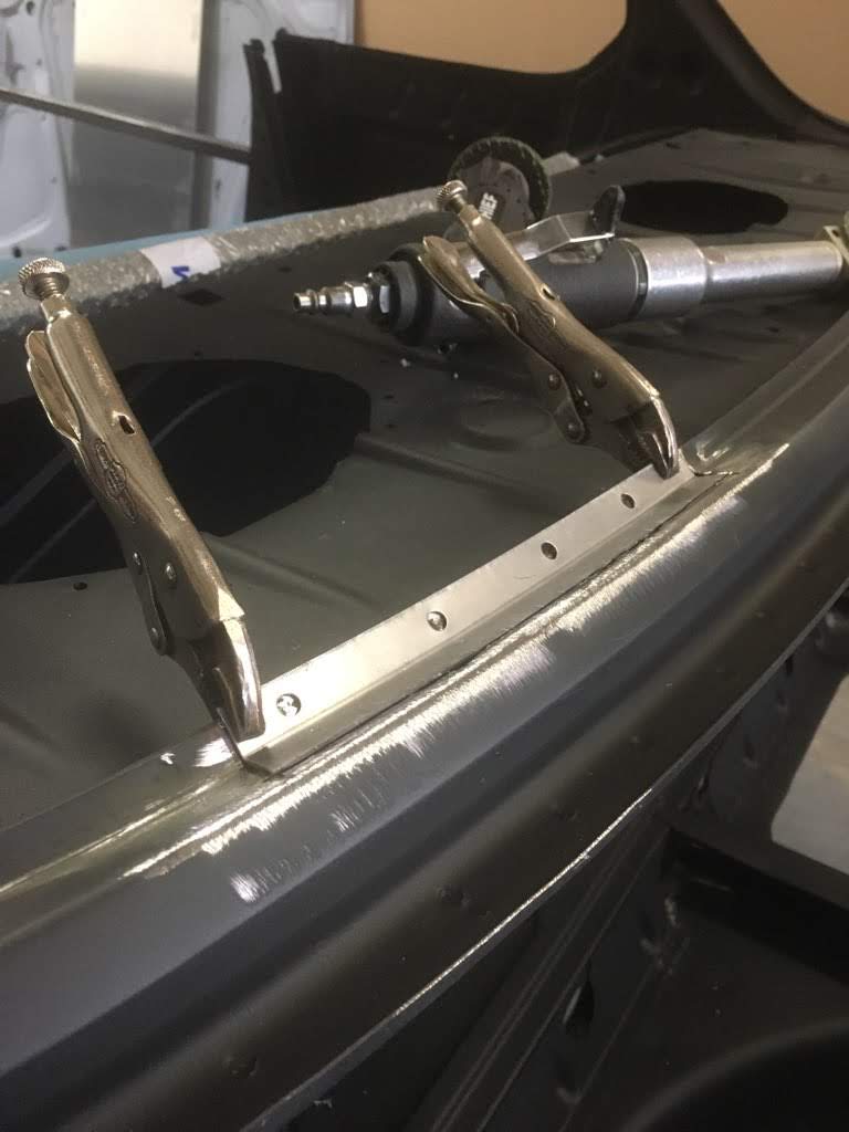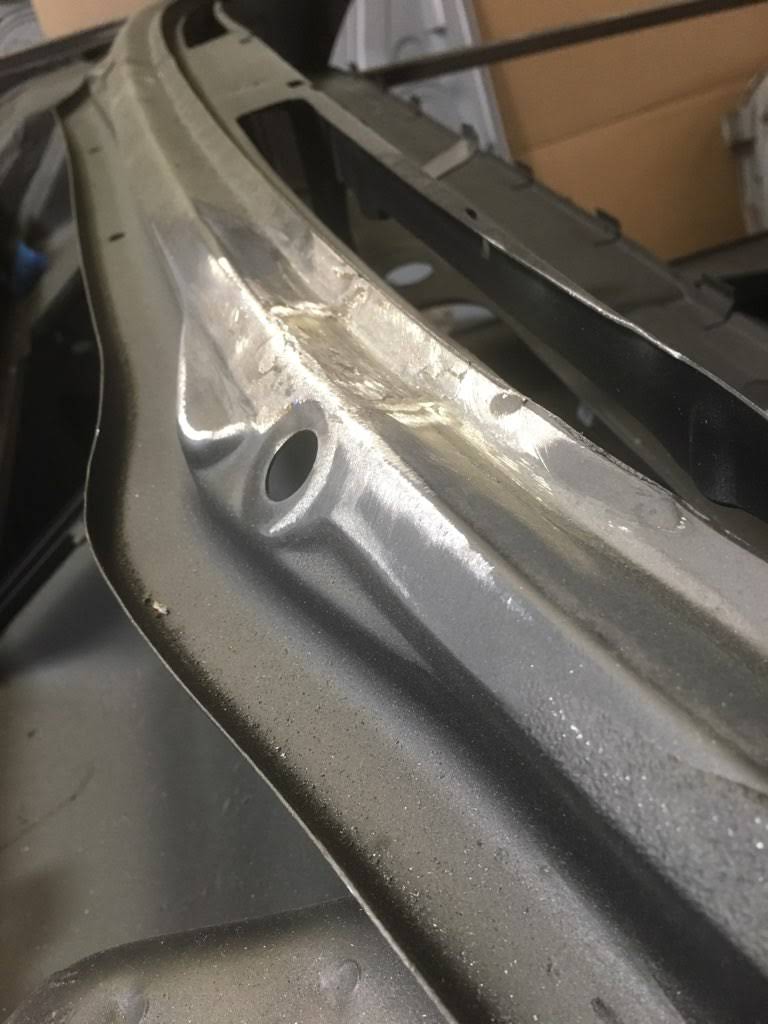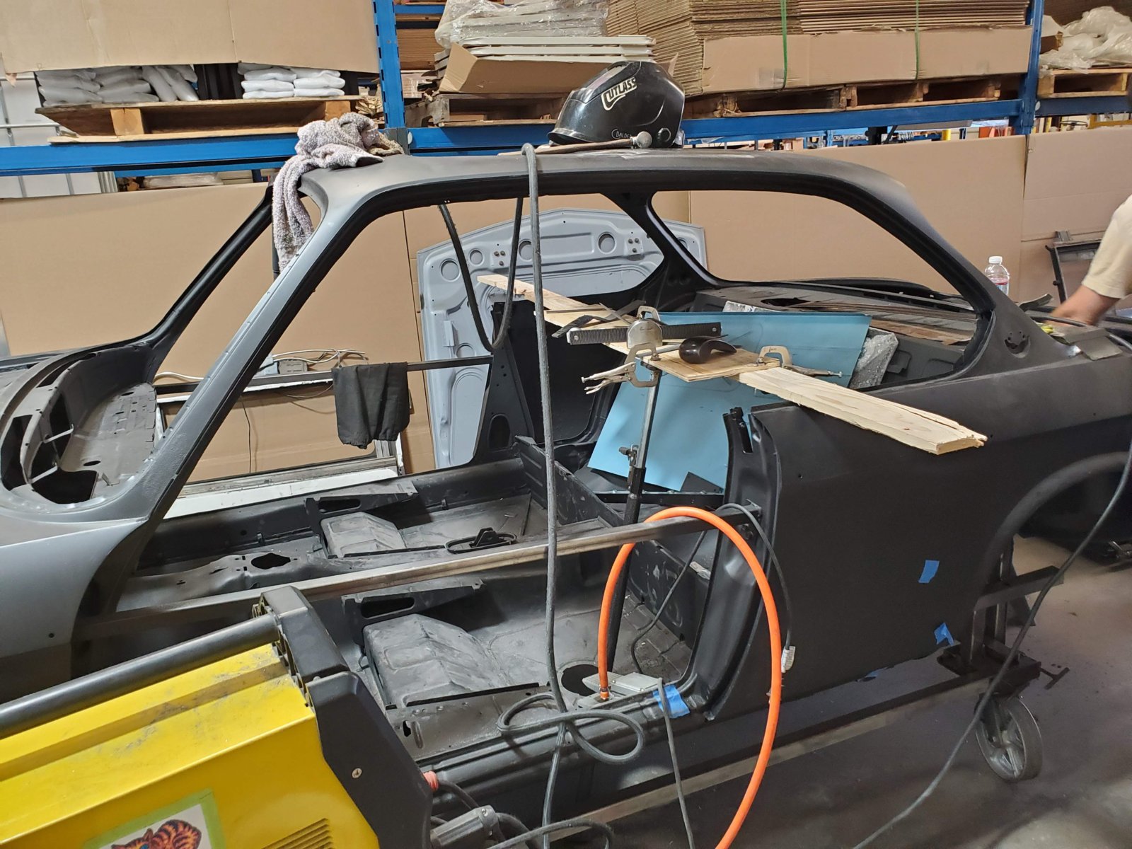 Prior to sealing. Before someone gets all wiggy about the rotisserie bracket mounts, this is a US car so it has big braces welded in behind the bumper brackets, plus they welded in some braces to the trunk floor also. No coupes were harmed in this photo.