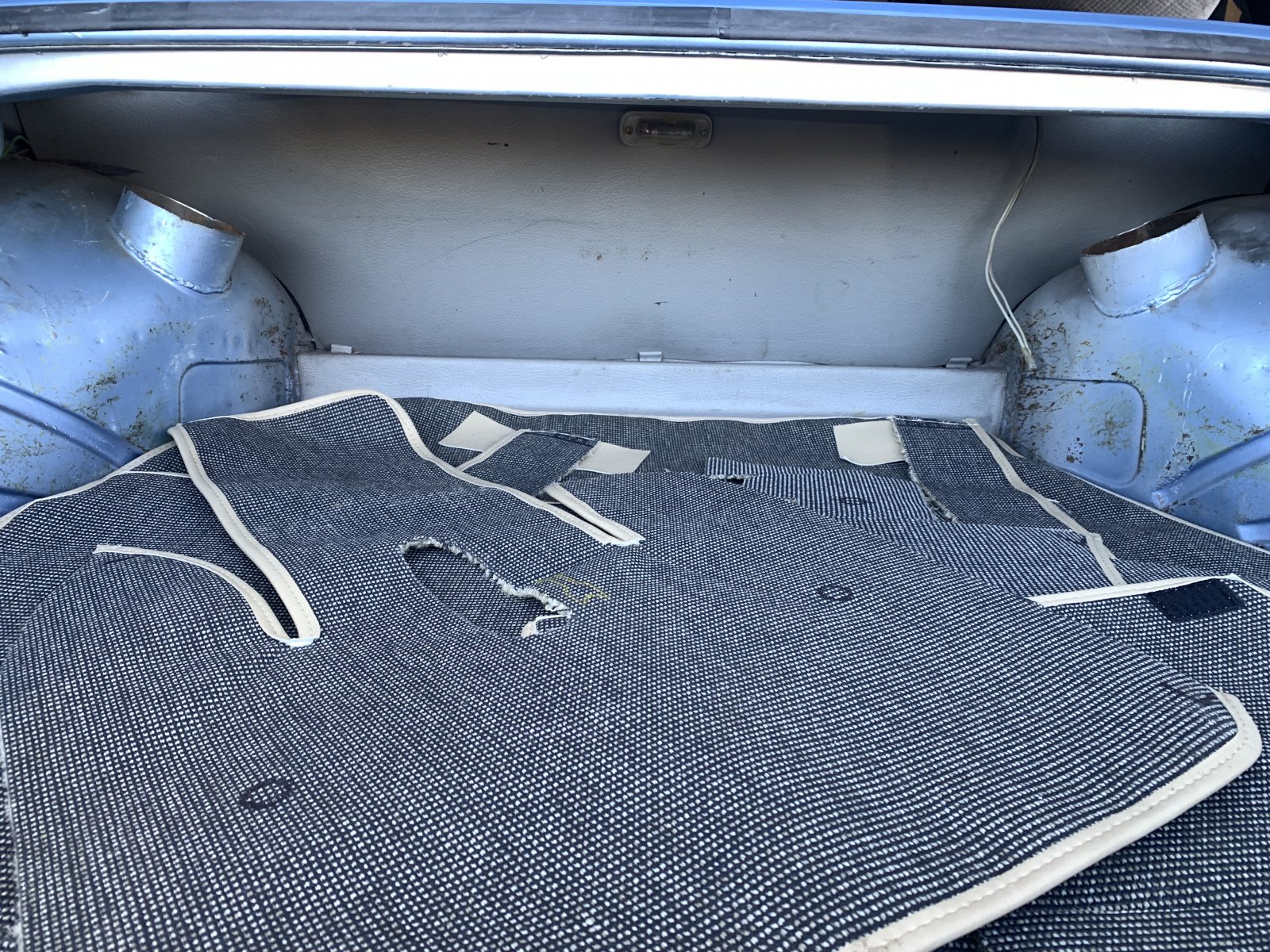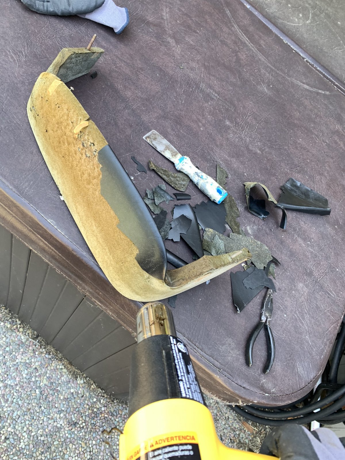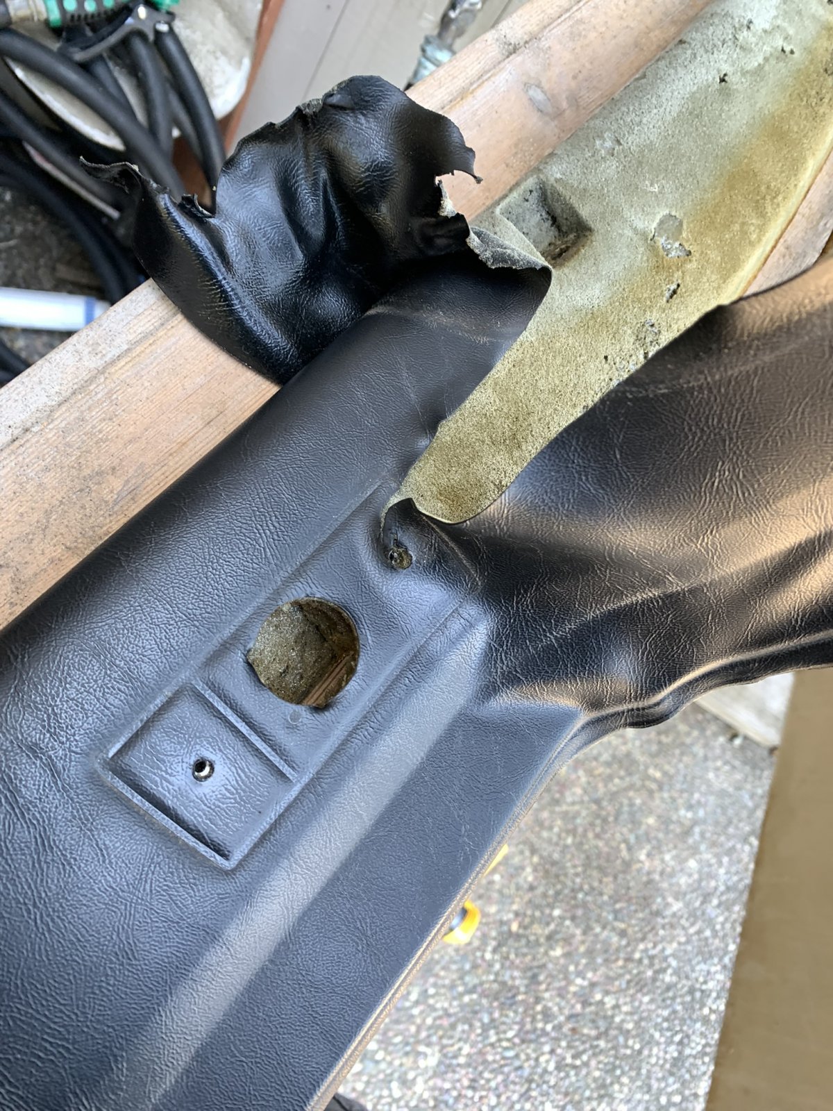 After a bit of research I found some marine grade exterior four-way stretch vinyl with a texture very similar to the original. I plan on testing it in the next couple of weeksThe suspense is killing’ me! So, then….how did you recover the pieces??!