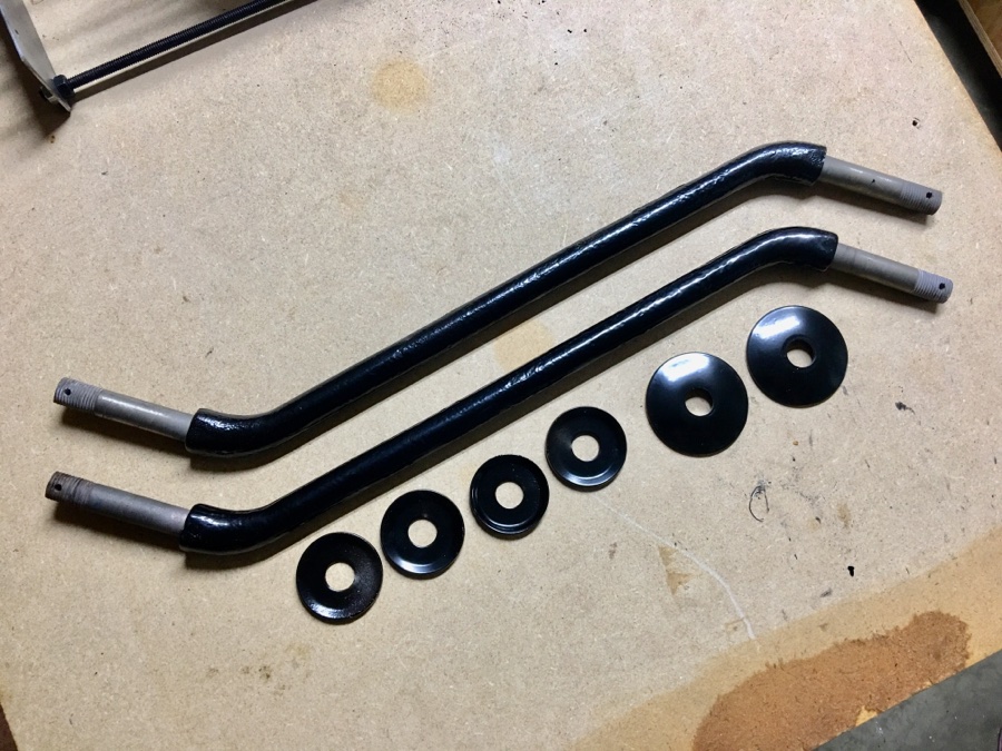 Then we moved on to installing new front subframe bushings. Those really threw us for a loop. The basic method is simple enough. Get something sturdy in the back through which you slide a threaded rod and pass that through the bushing in the front using the large washer to help you tighten a nut. With that, you try and squeeze that fat piece of rubber in that hole. After many attempts using what seemed like ungodly amounts of force, we had to send a call for help. OC/PGCoupe Mike came to the rescue and with a few tips from him and moral support from HBChris, we finally managed to persuade the damn things to go in.