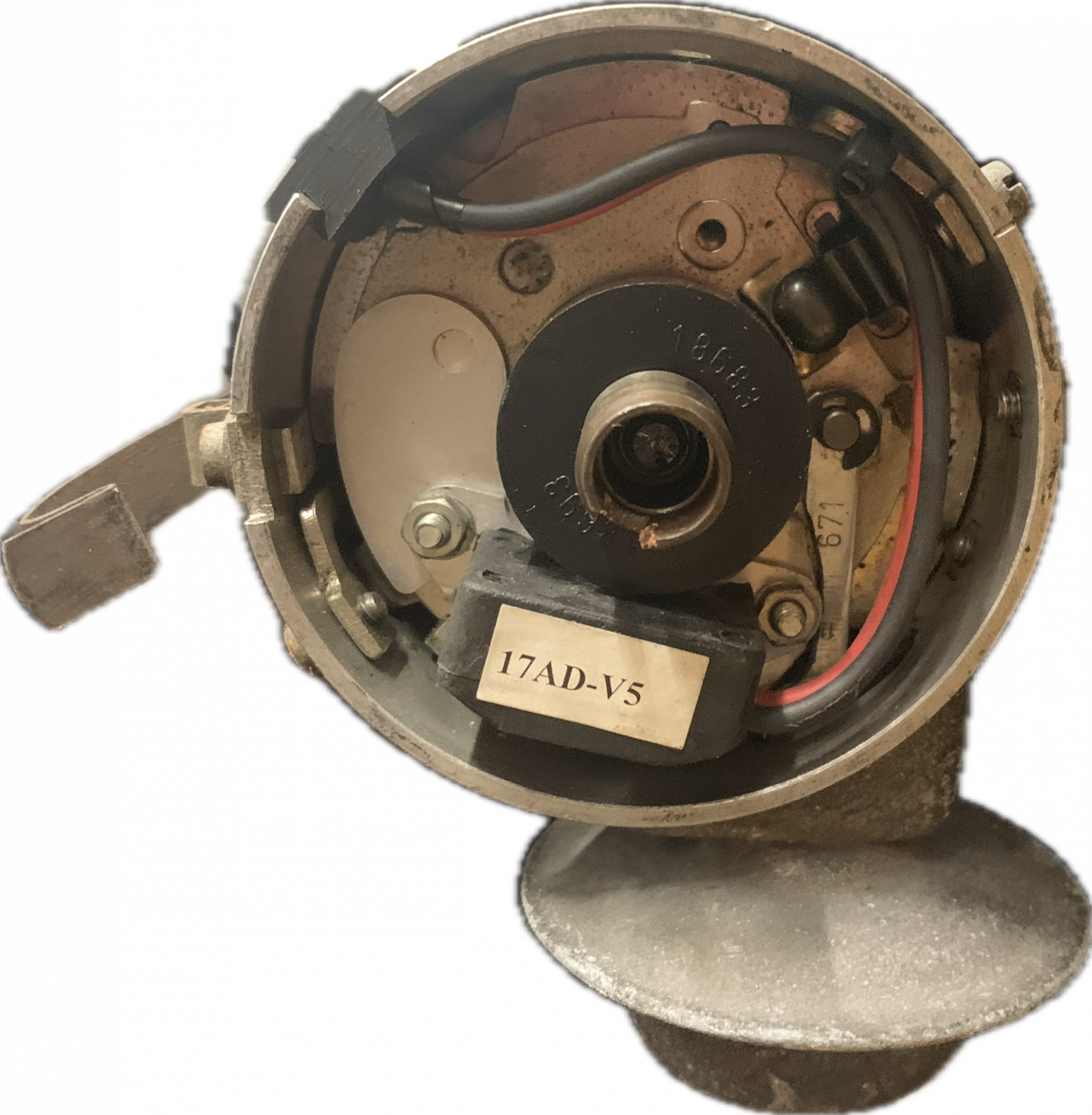 I don't know enough about what the insides of the different distributors look like to help, but I am pretty sure that somebody has replaced the points with a Pertronix Ignitor.