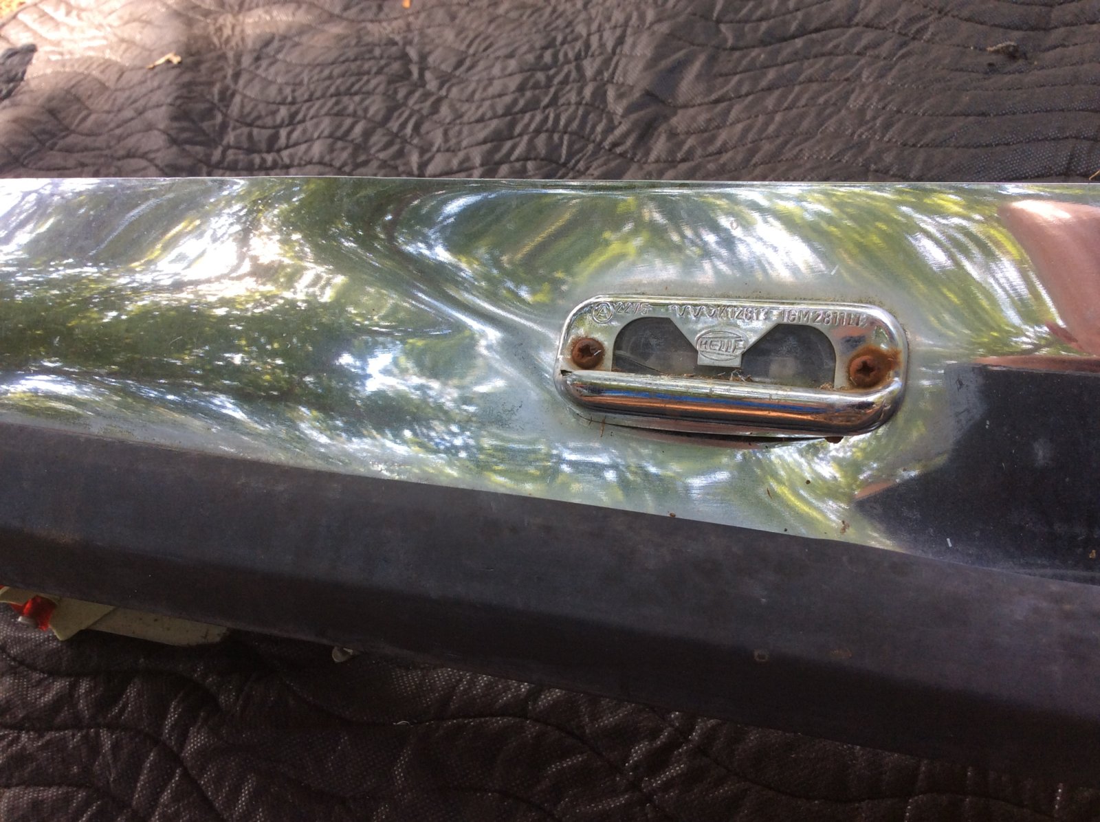The first photos of a rear bumper, it looks like someone pulled it, drivers side has a crease, rear fog housing is cracked.