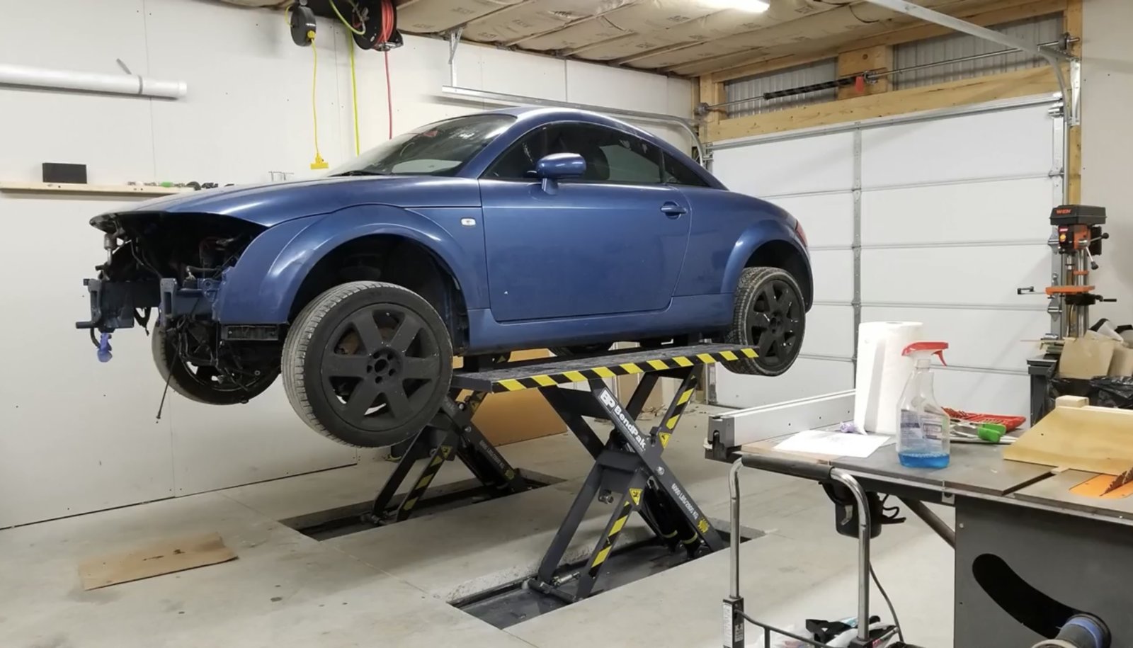 Note to self. Looking at mid lift options. His garage is 10’. Audit TT about 53” tall, same as e9. Looks like I could lift it full height without hitting an 8’ ceiling.