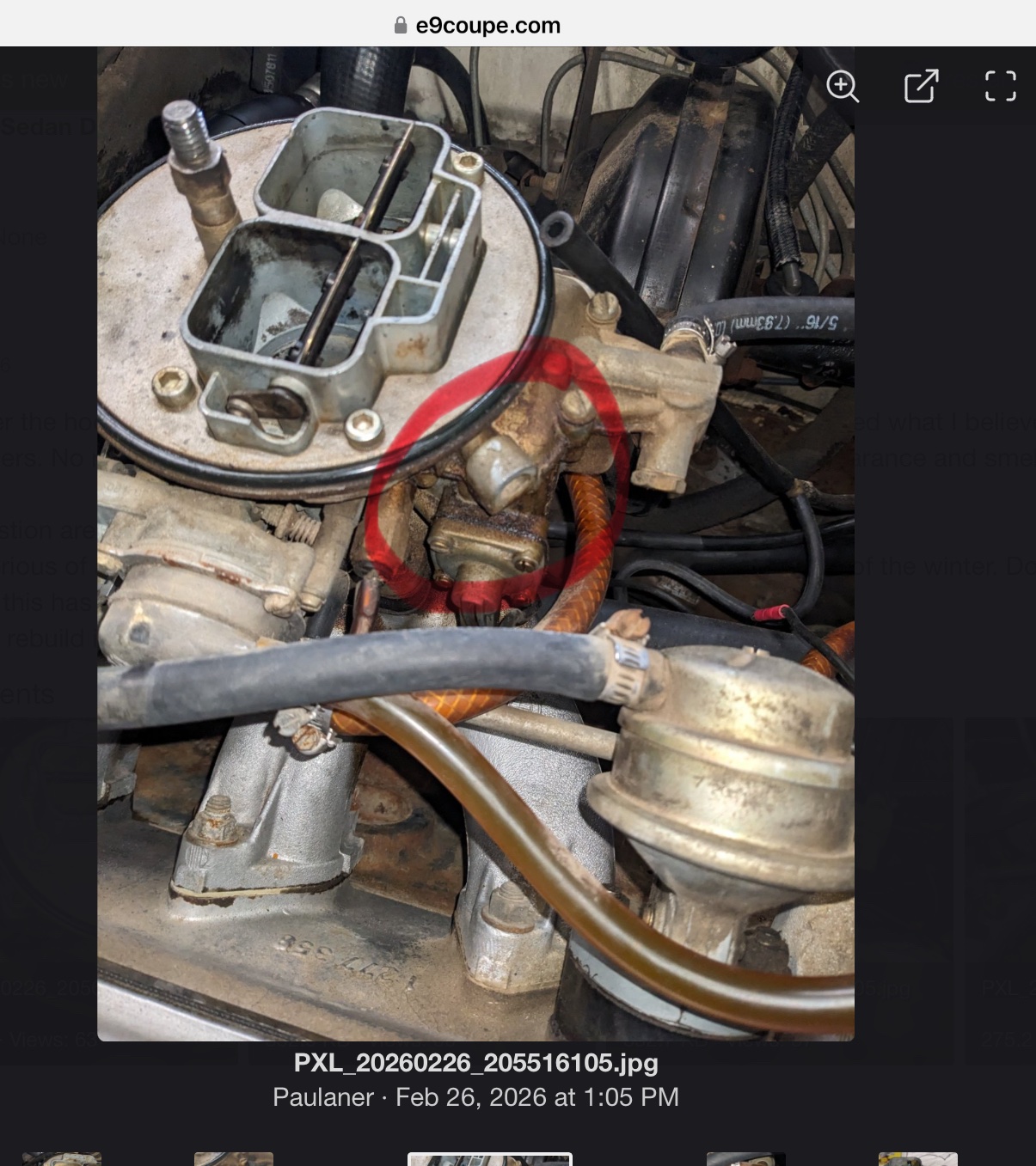 On my car. I plugged the half inch holes at the front of the weber. They vent right to the float bowl. So float bowl gas evaporates.(it’s been awhile but I think they are where I put a red circle on your pic)