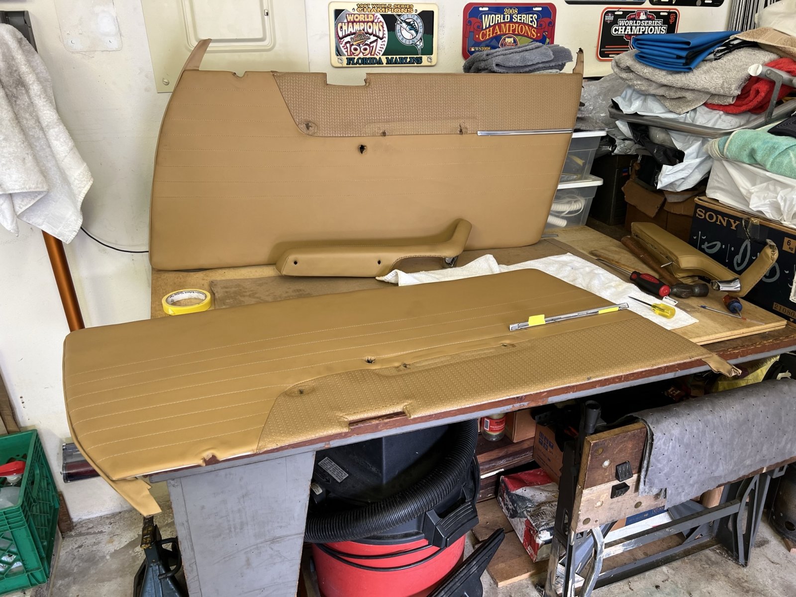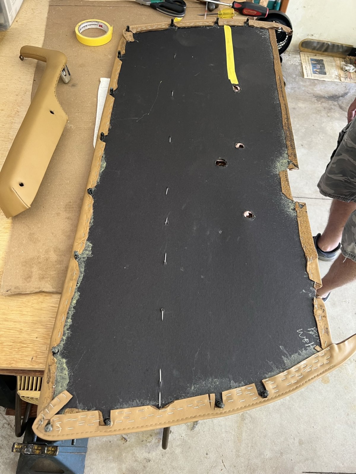 My panels were custom-made with thicker backer boards and foam to cover the large nylon pins that hold the panels on the door. Nothing was original to start.