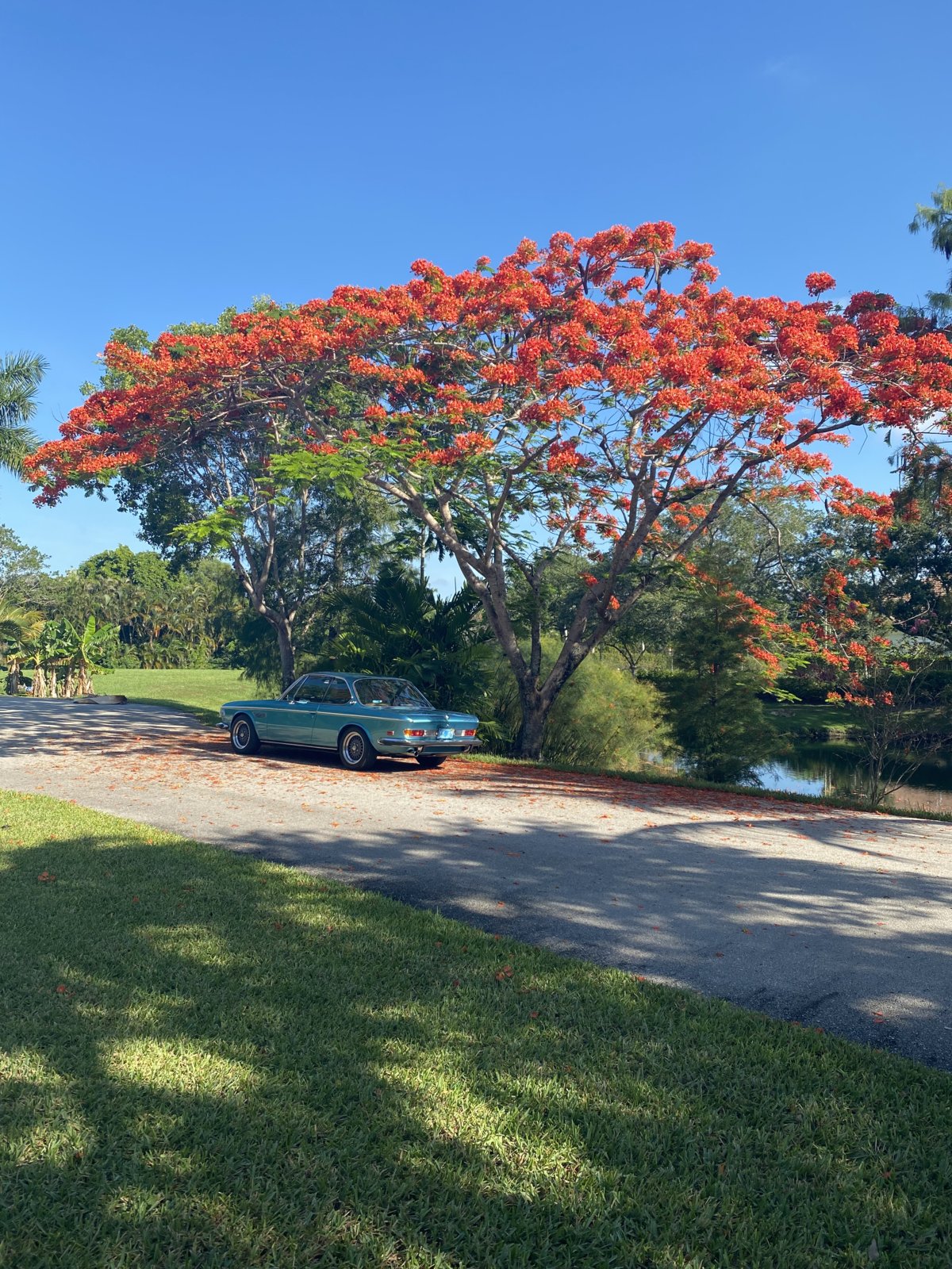 South Florida doesn't have those spectacular Maple leaves in the Fall, but we do have a tree from South Africa called a Royal Poinciana that blooms in late May and June. The colors are red , orange and a rare yellow. Here's what Turkis looks like under them. The last pic is my own tree planted about 25 years ago.