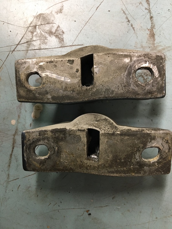 I don’t know whether it’s pot metal or aluminum or what. Nowadays we’d say it was made in China. But we look at it with a jaundiced eye, and forget that these things are 50+ years old. Mine weren't that bad, but I replaced them, and unbelievably they’re cheap.(that may be a double entendre) Putting them on wasn’t very difficult. Probably helps to have two people.