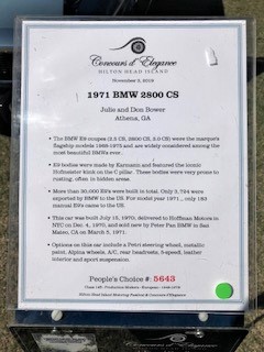 Good showing of E9s at this show, among many other lovely cars. Pics below of Gary Beck, Phil Parkey, Amy Lester, Avery Wise and Don Bower. Gary's trunk roundel blew off en route. Avery won Best in Preservation Class and Amy won a Special Award in Women in Motoring Class.