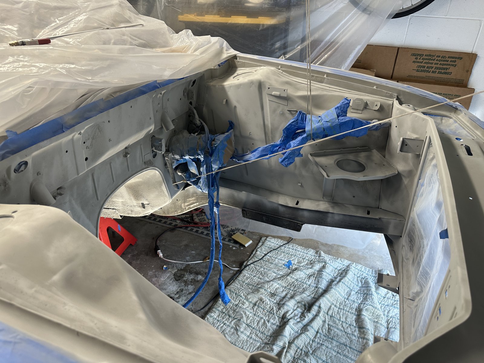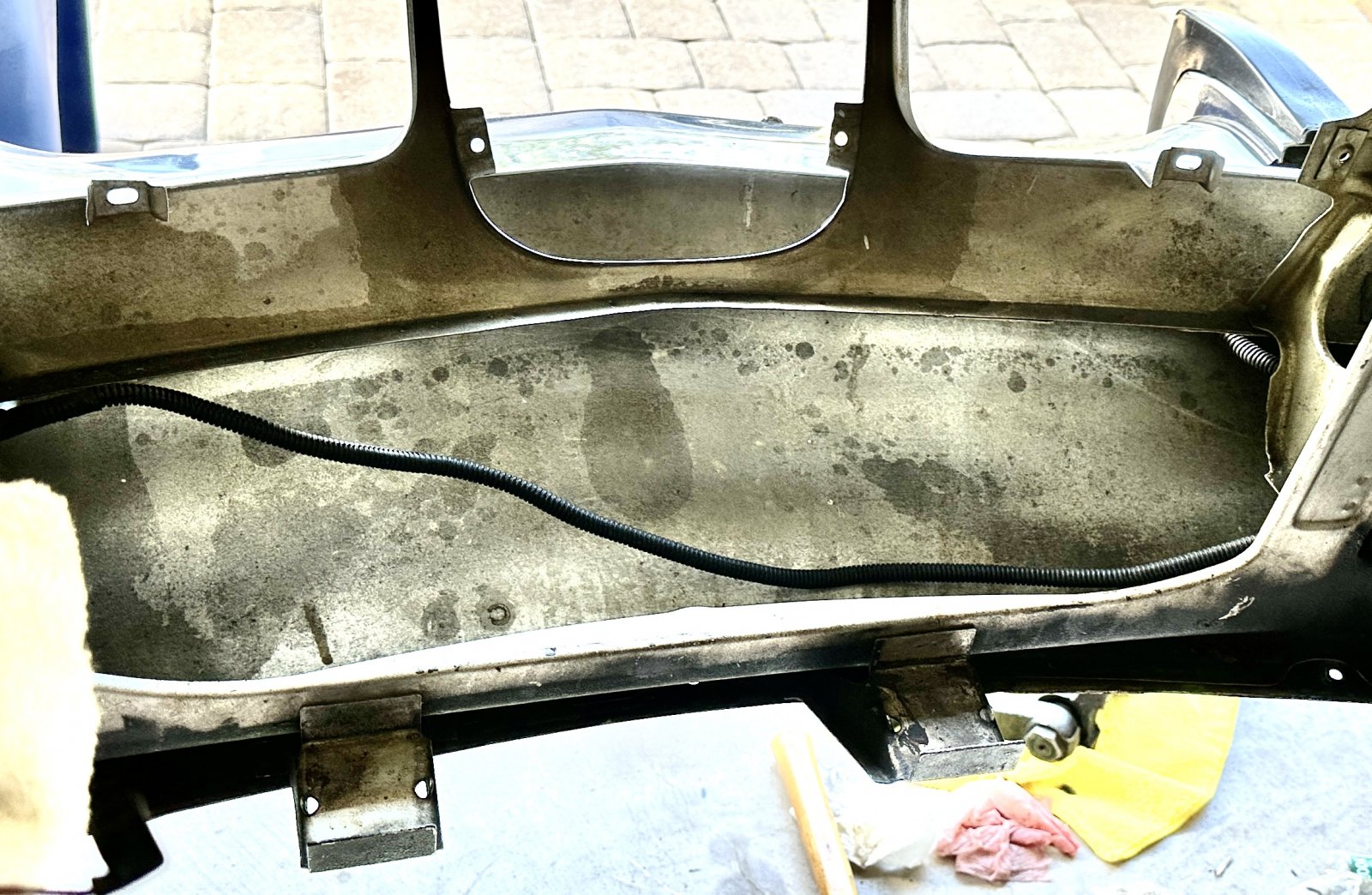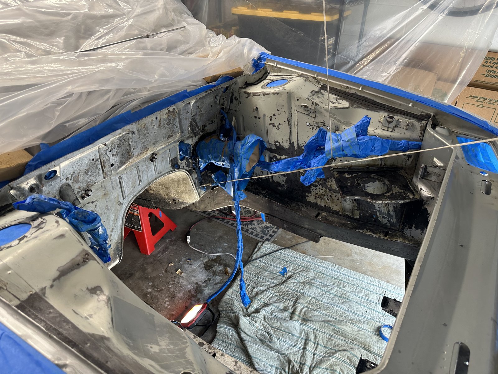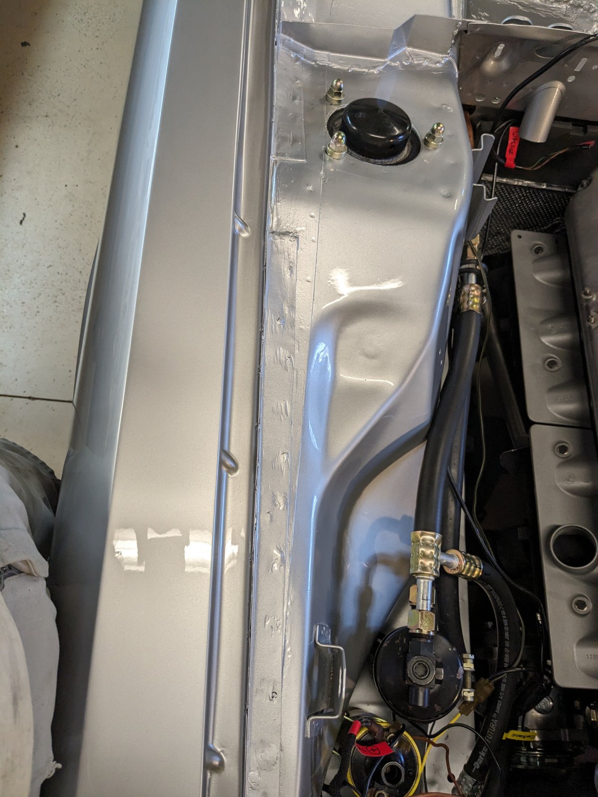 Impressive Steve. I mean it is exhausting just thinking about this list of projects you attacked and mastered. Begs the question, you living on Espresso, or Red Bull energy drinks? I mean you have accomplished so much! MikeI have an insane amount of projects going on at once, and am often talking myself off a cliff to keep from being overwhelmed. But progress is being made. First, I have finished scraping and sanding the engine bay. This has taken an inordinate amount of time, each time I think I am done, I find more to do. I have also put cavity wax into every seam, and sprayed it into every space. Any flash rust was converted (the black in the pic). Anyway, pics of before and after priming (I ran out of primer so that's why it has a camo-look), the nastiness is gone: