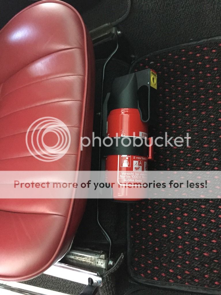 I have 4 more , box new, seat mounted, BMW fire extinguishers., complete with a cradle for the bottle and a Gloria decal. I am posting a picture of one and also a picture of DQ's car with one mounted. DQ is making excellent mounting brackets for them. Check out Stan's feedback on these. $260 shipped in the lower 48.