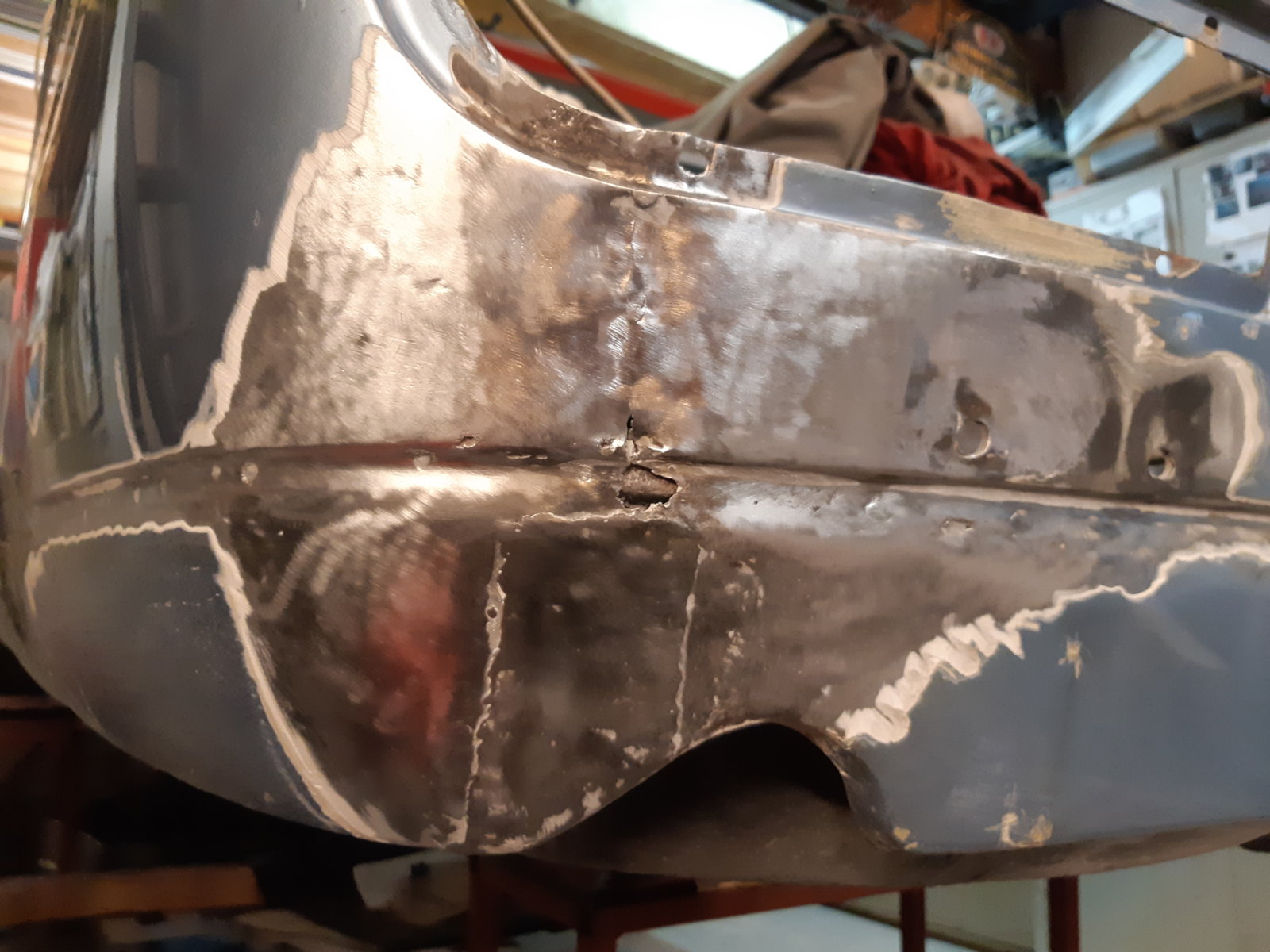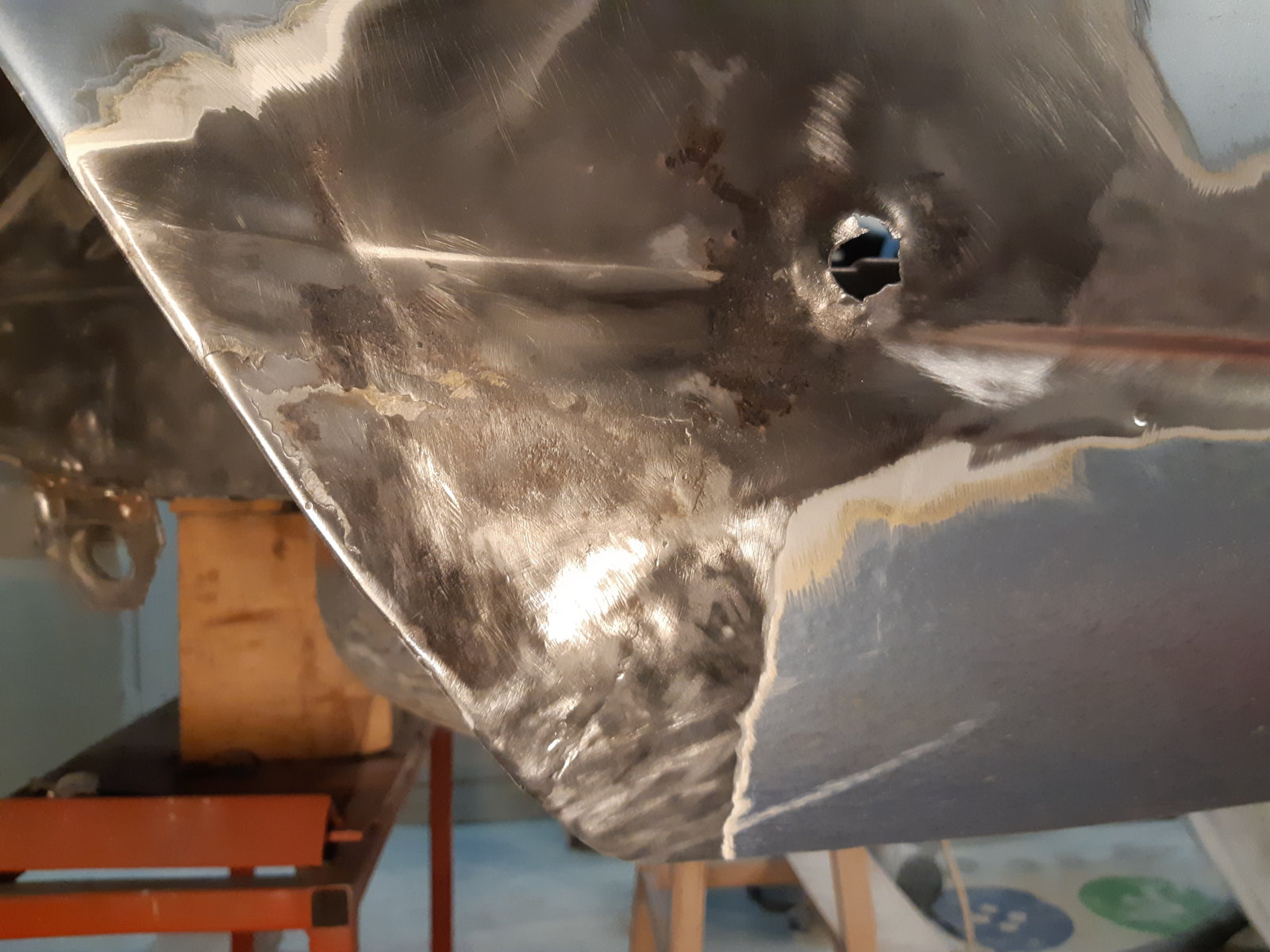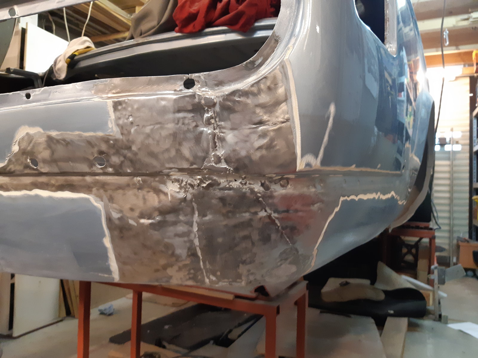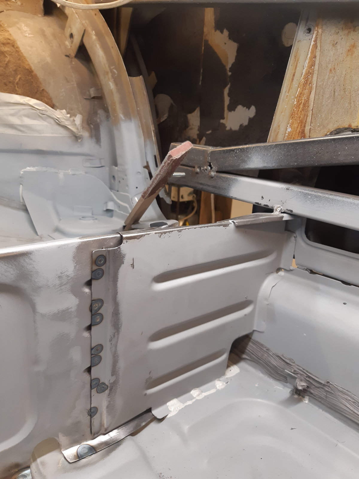 I finished welding and smoothing the left rear floor. My welding is getting better now, it's much smoother then the right side...if you slide your fingers over it the seam is hardly noticeable.