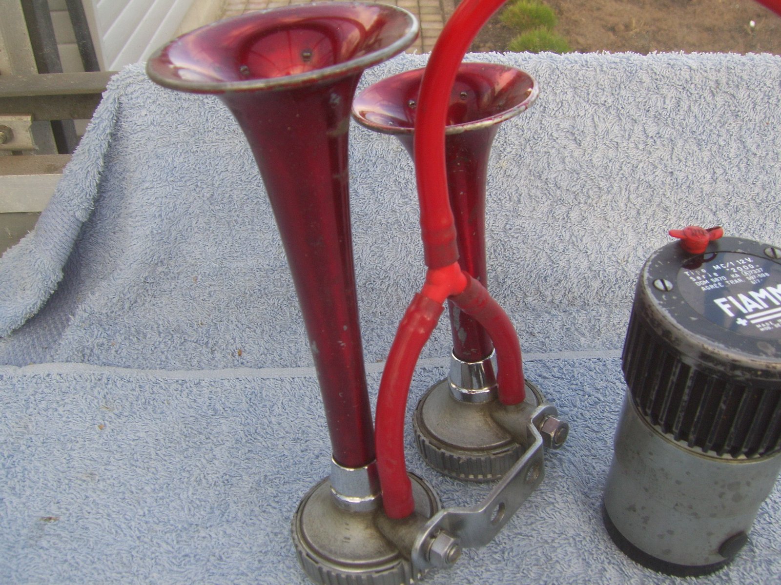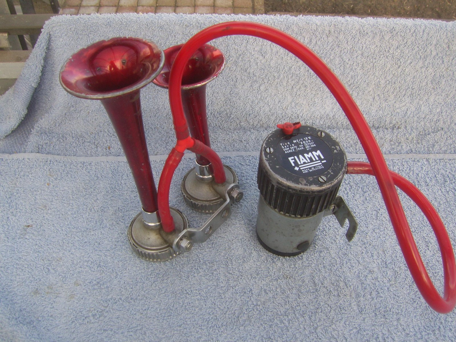 FS: 12 Volt Fiamm MC/1 Serie "2000" Air horn compressor complete with bracket and tubes and 2 Fiamm tipo TA / 0 GT Serie "2000" horns in very good condition. Air horn compressor is working very good. Price 275 euro + shipping.