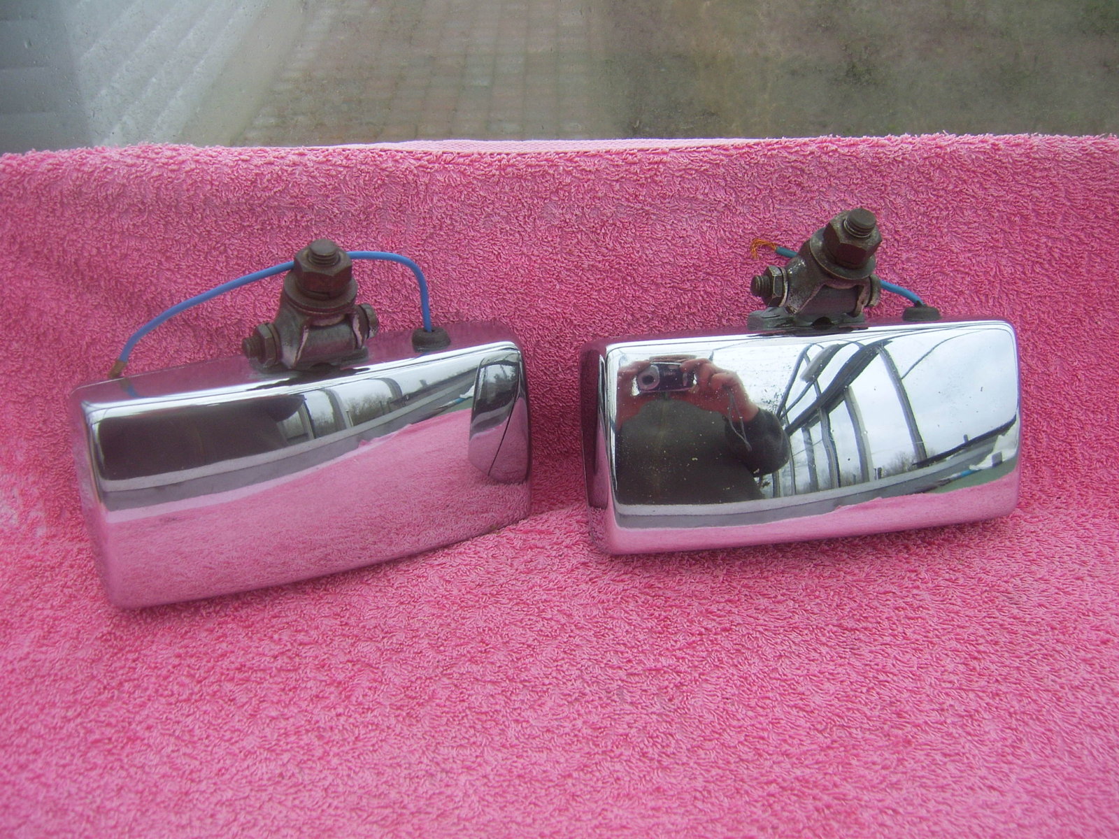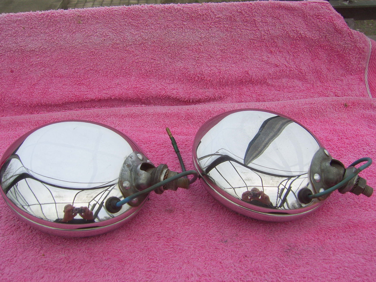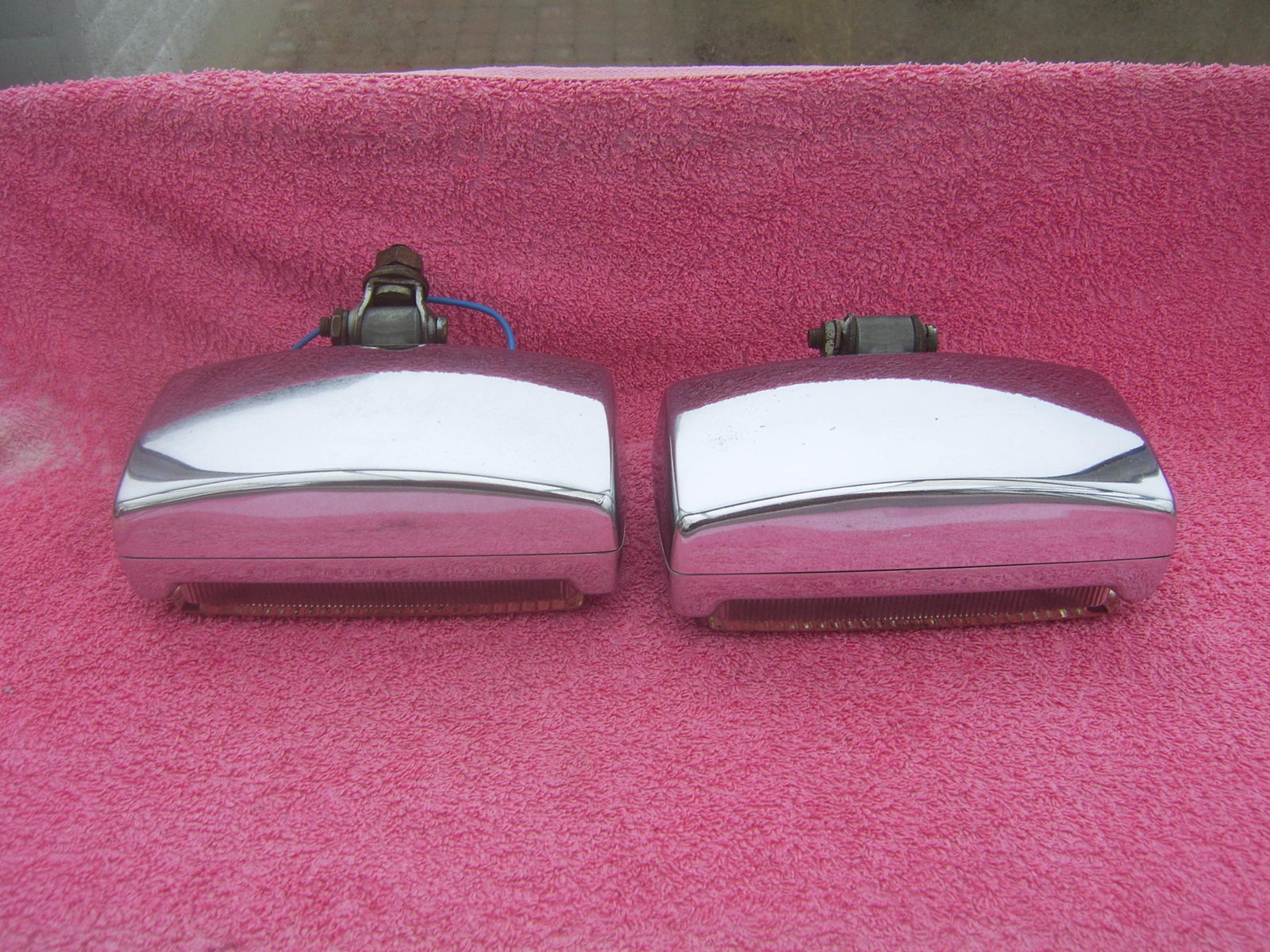 SOLD: Set Hella 140 clear fog lights. Reflectors, lenses and chrome rings are NOS. The chrome backs are used but in very good condition. Price 225 euro + shipping.
