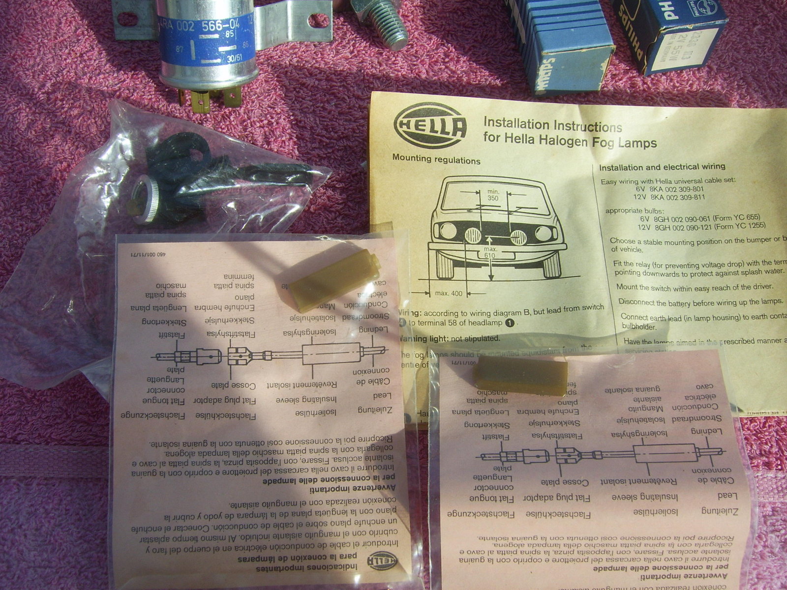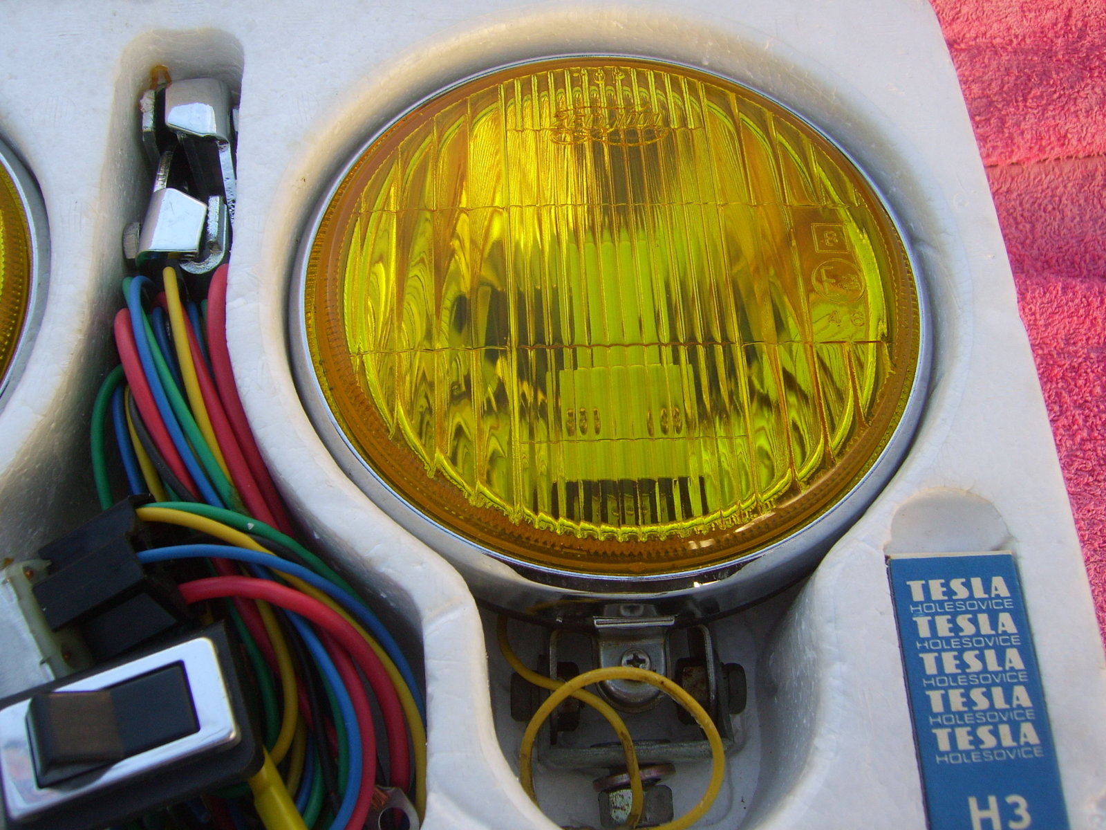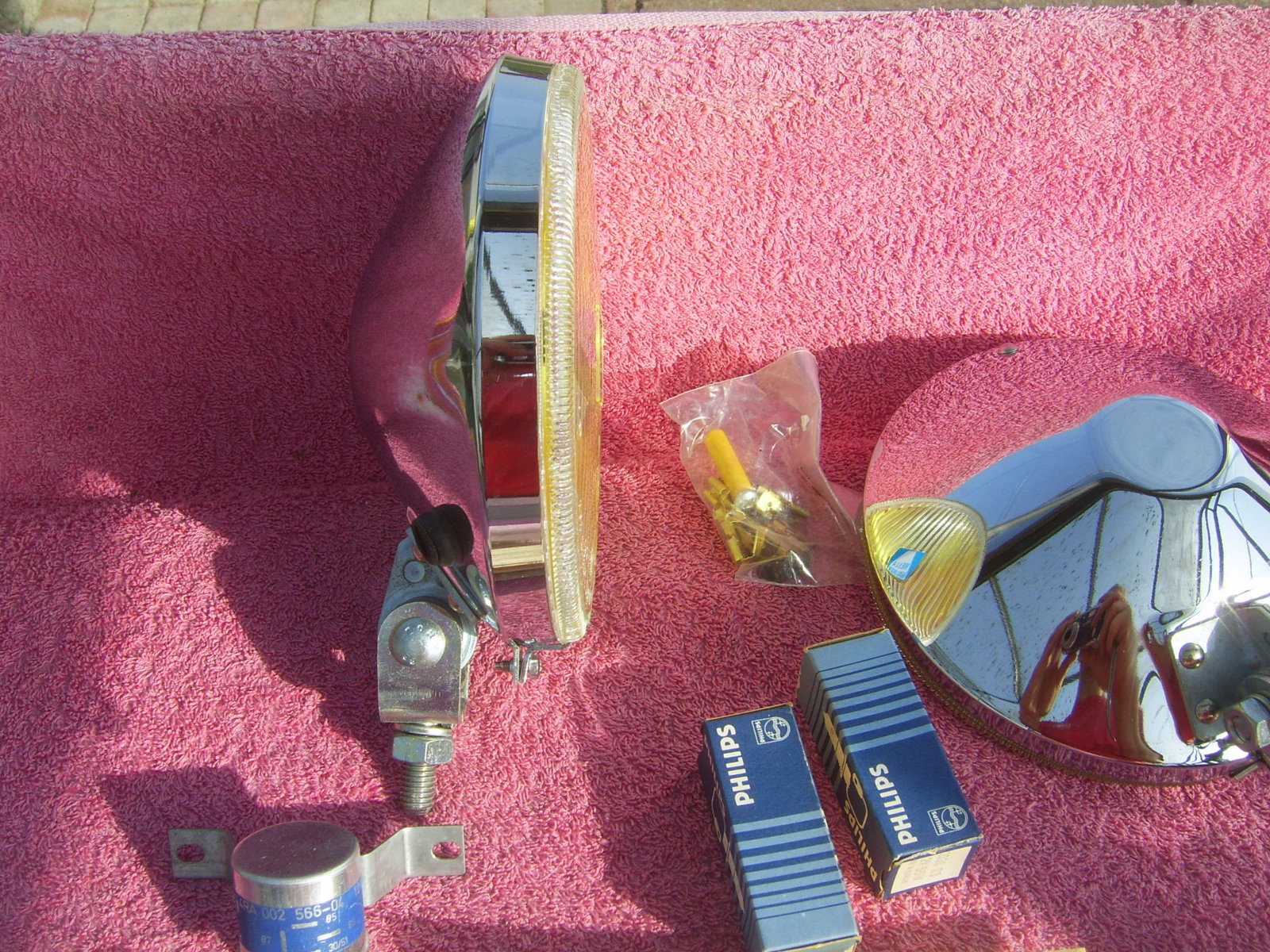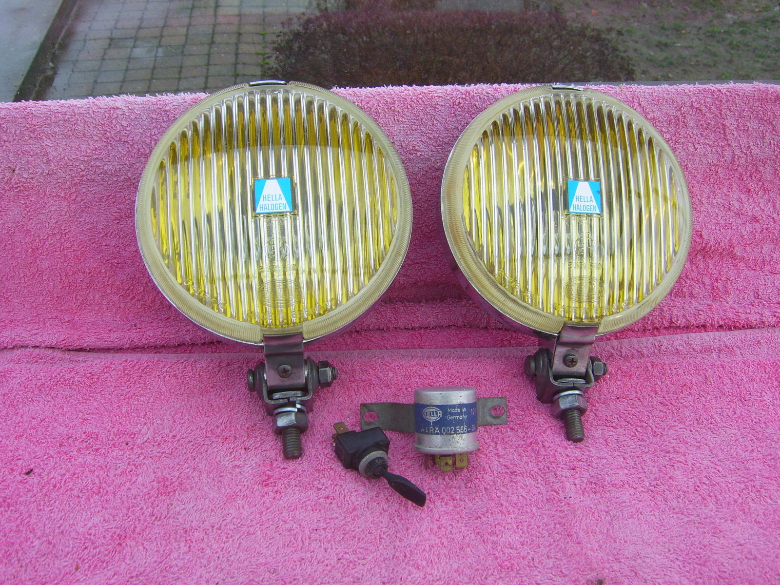 SOLD Set 6"25 NOS chrome Hella 160 yellow fog lights, still in the Original packaging. With instruction manual, switch, wiring, mounting material, 2 bulbs and relay. Price 240 euro + shipping.