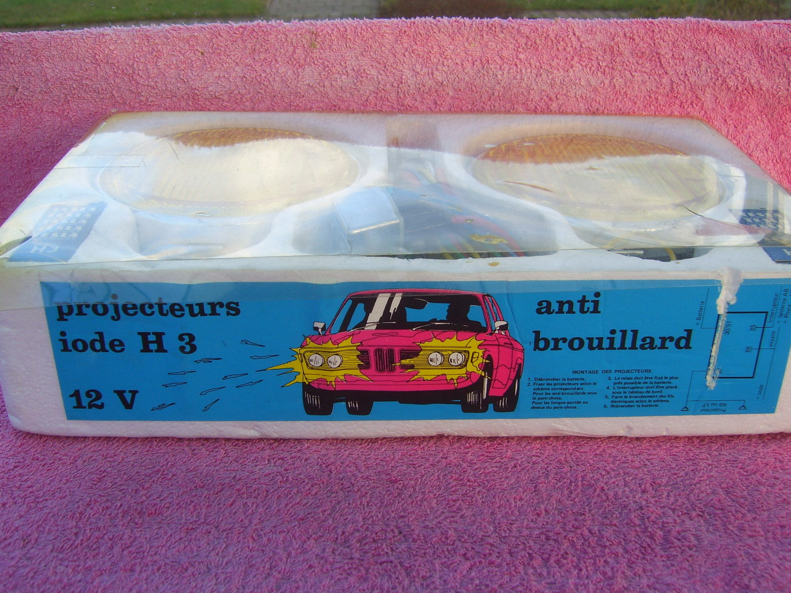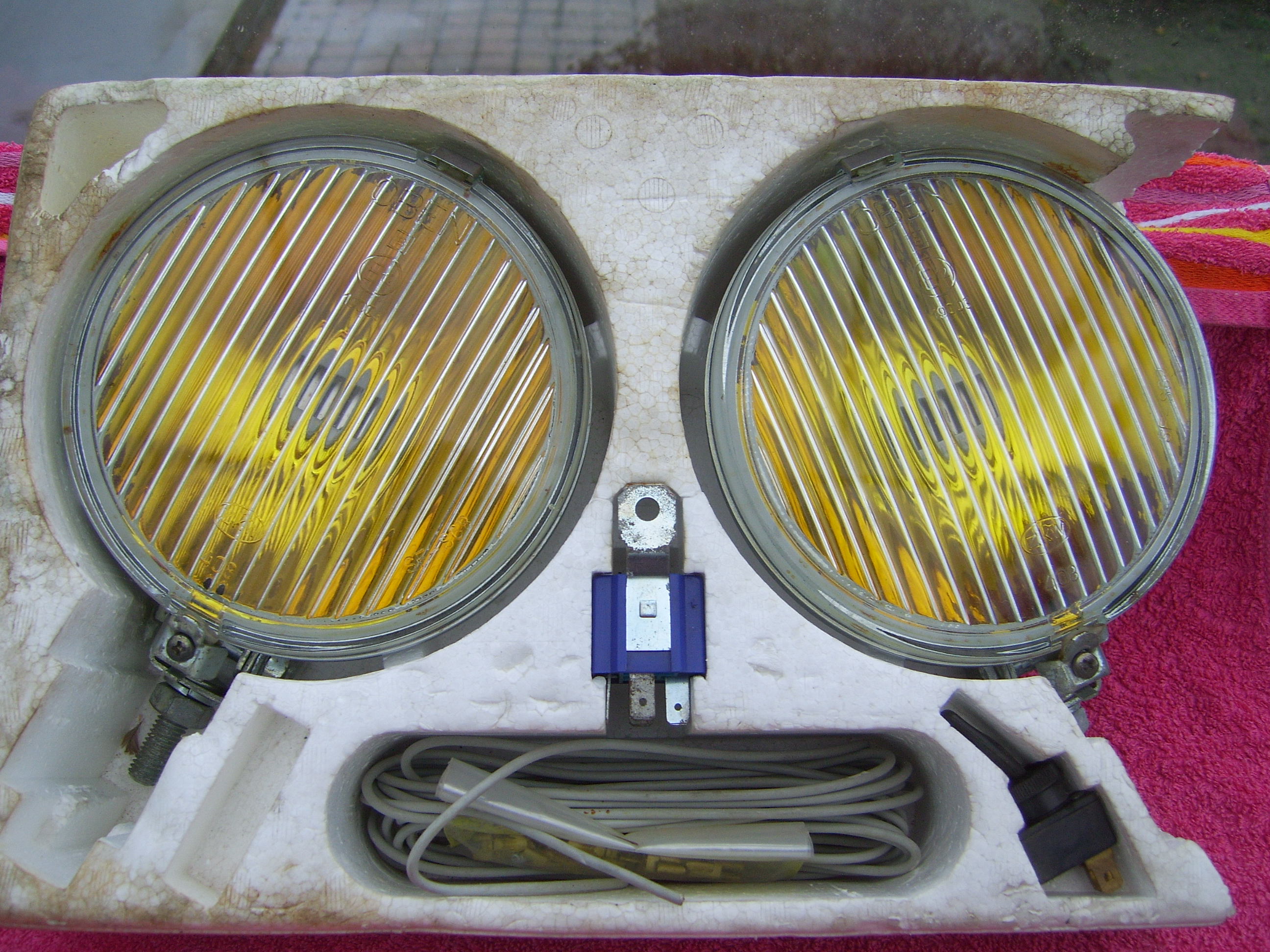 SOLD Very rare set NOS yellow fog lights still in the original box, with a picture of a E9. Included are 2 bulbs, relais, wiring, switch and brackets. Price 150 euro + shipping.