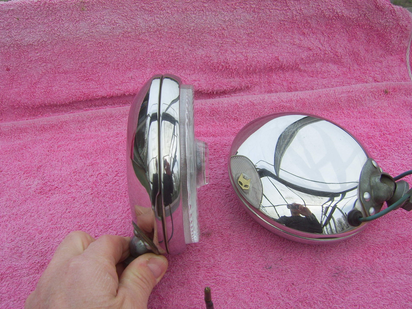 SOLD: 6" Hella 142 clear fog lights, chrome have a few imperfections. Price 195 euro + shipping.