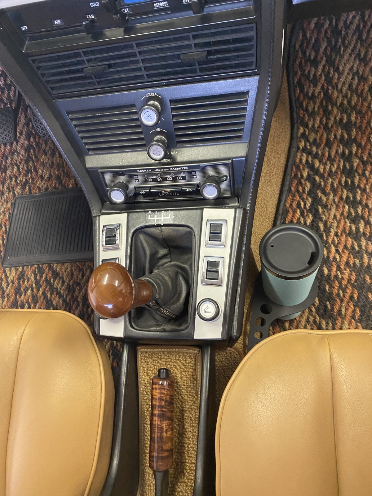I really like this, is it for an e9? Does it go behind the hand break?Eric Anton made/makes center armrest consoles with a retractable cup holders. This is what is looks like retracted.