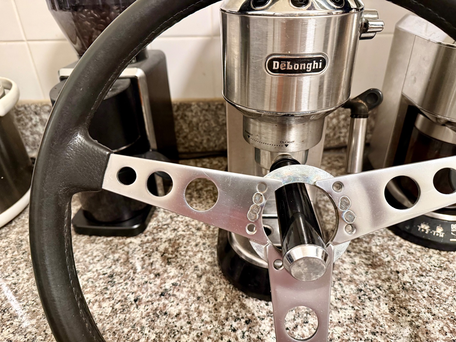 Initially, I had entertained the idea of having this Petri recovered in new leather($550 @ Craft Customs) and charge the extra premium accordingly. But, I’ll let the potential buyer decide whether to use the present wheel as is or go the leather route