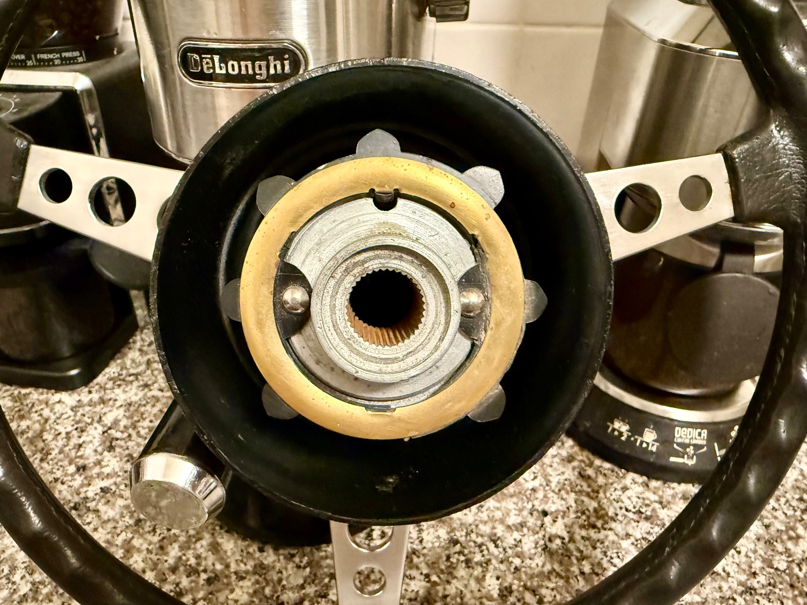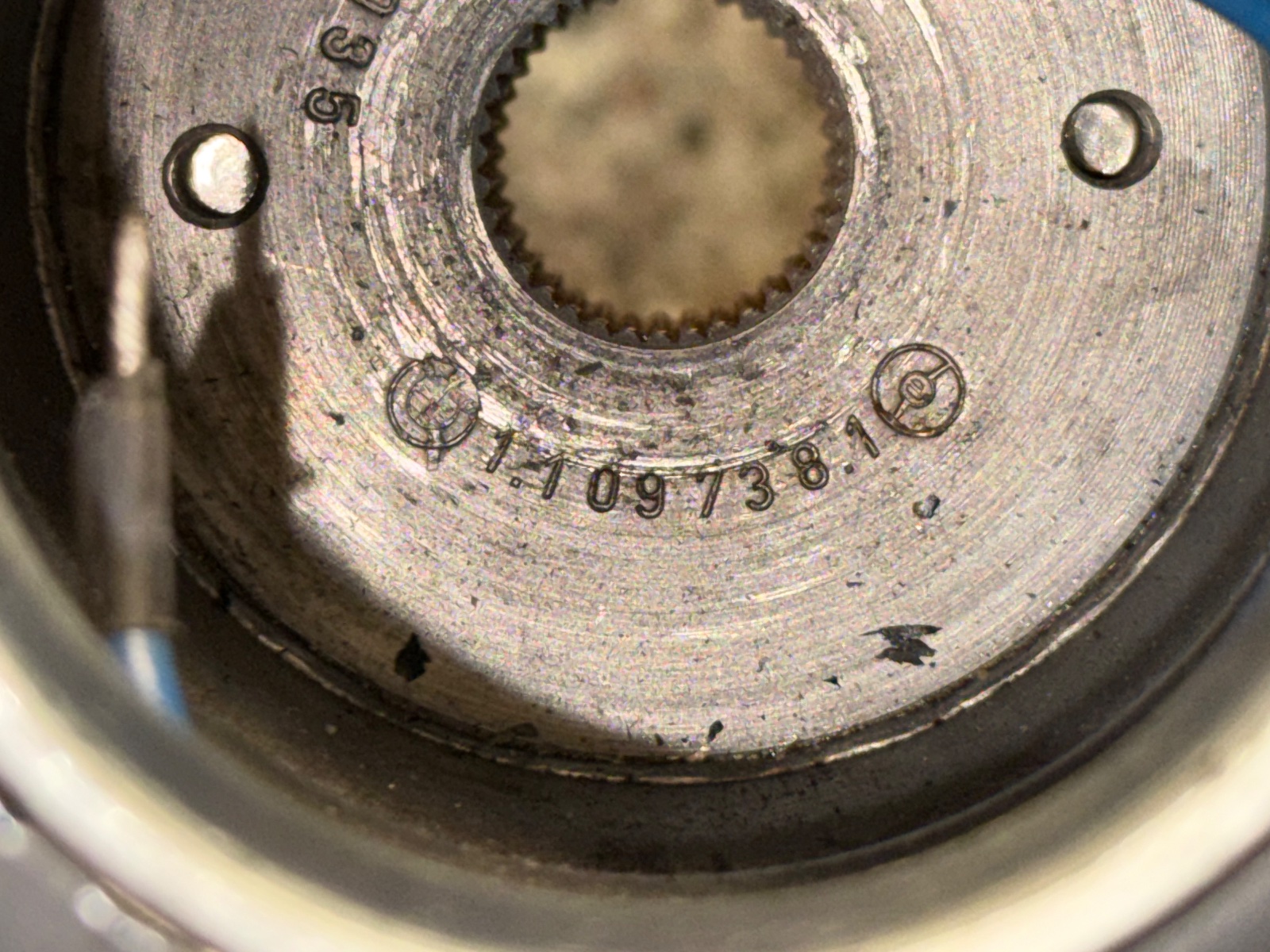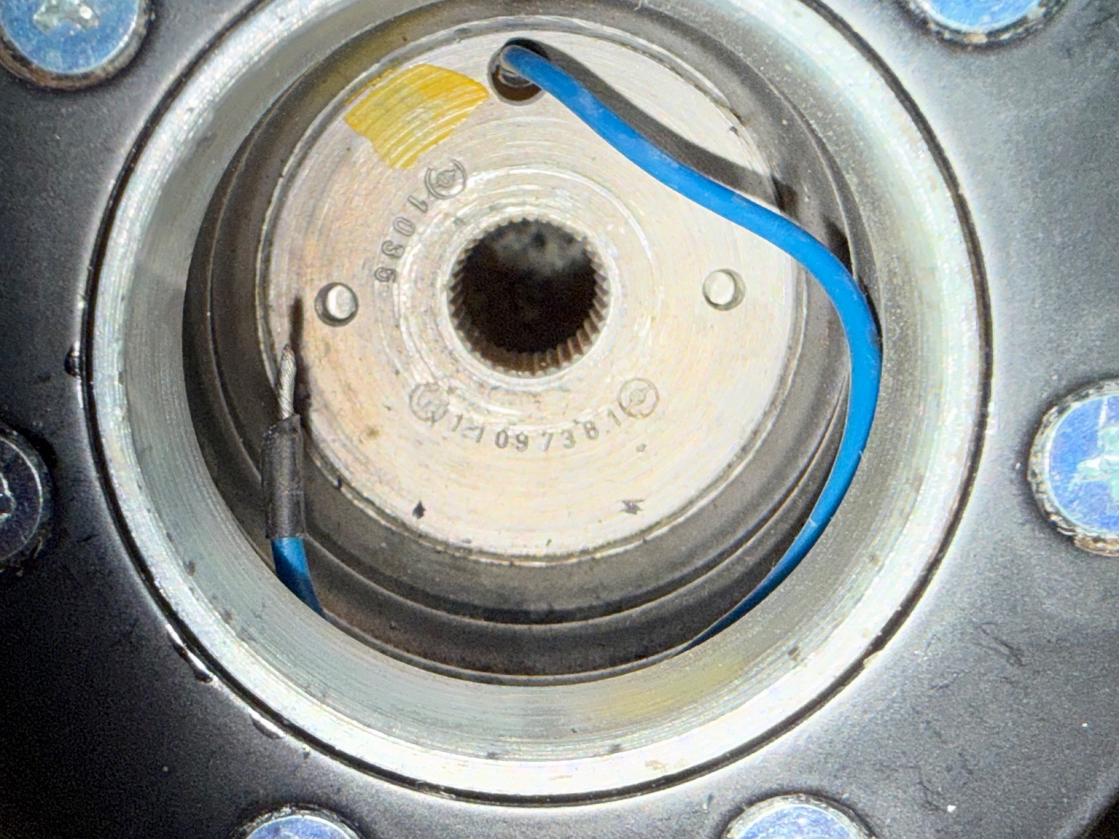 I disassembled all the individual hub parts for picture taking. During reassembly, one of the 8 ears of the horn contact ring snapped off (at bottom of ring). As stated, this is a new non-original contact ring that I presume was 3D printed, thus, the plastic is rather fragile and is not as robust as the original. The ears are just decorative elements and does not affect the functions of the horn contact ring.