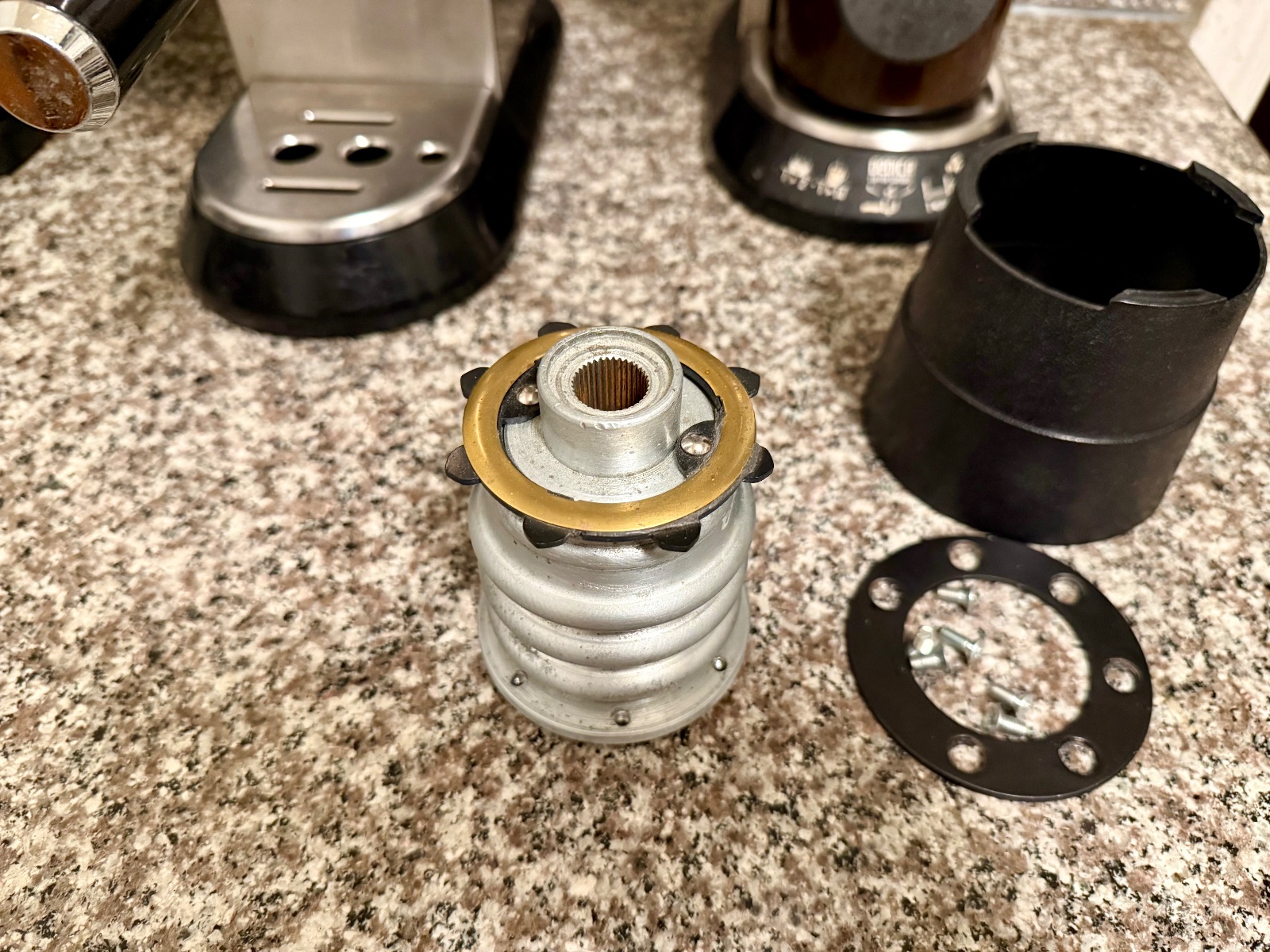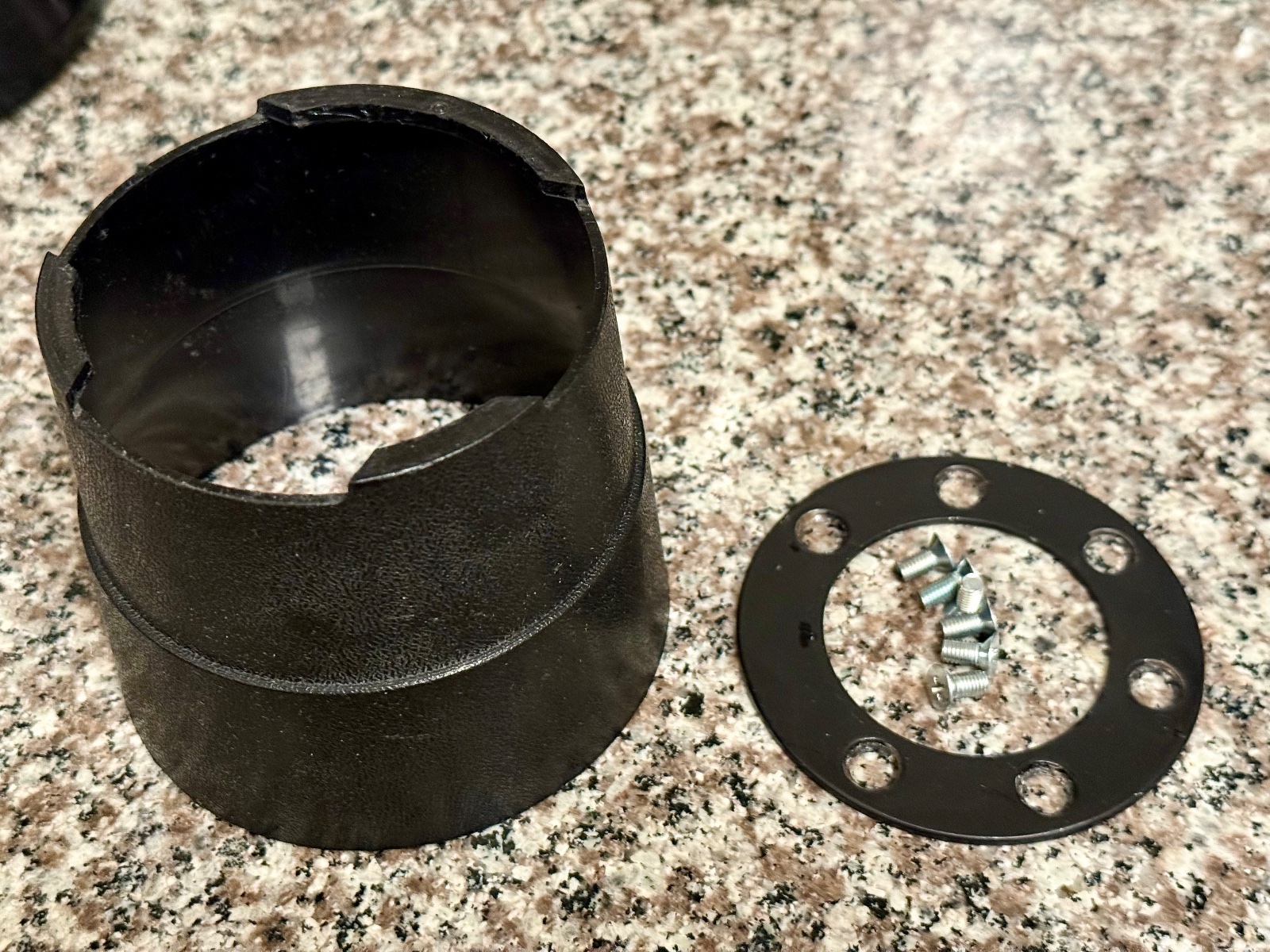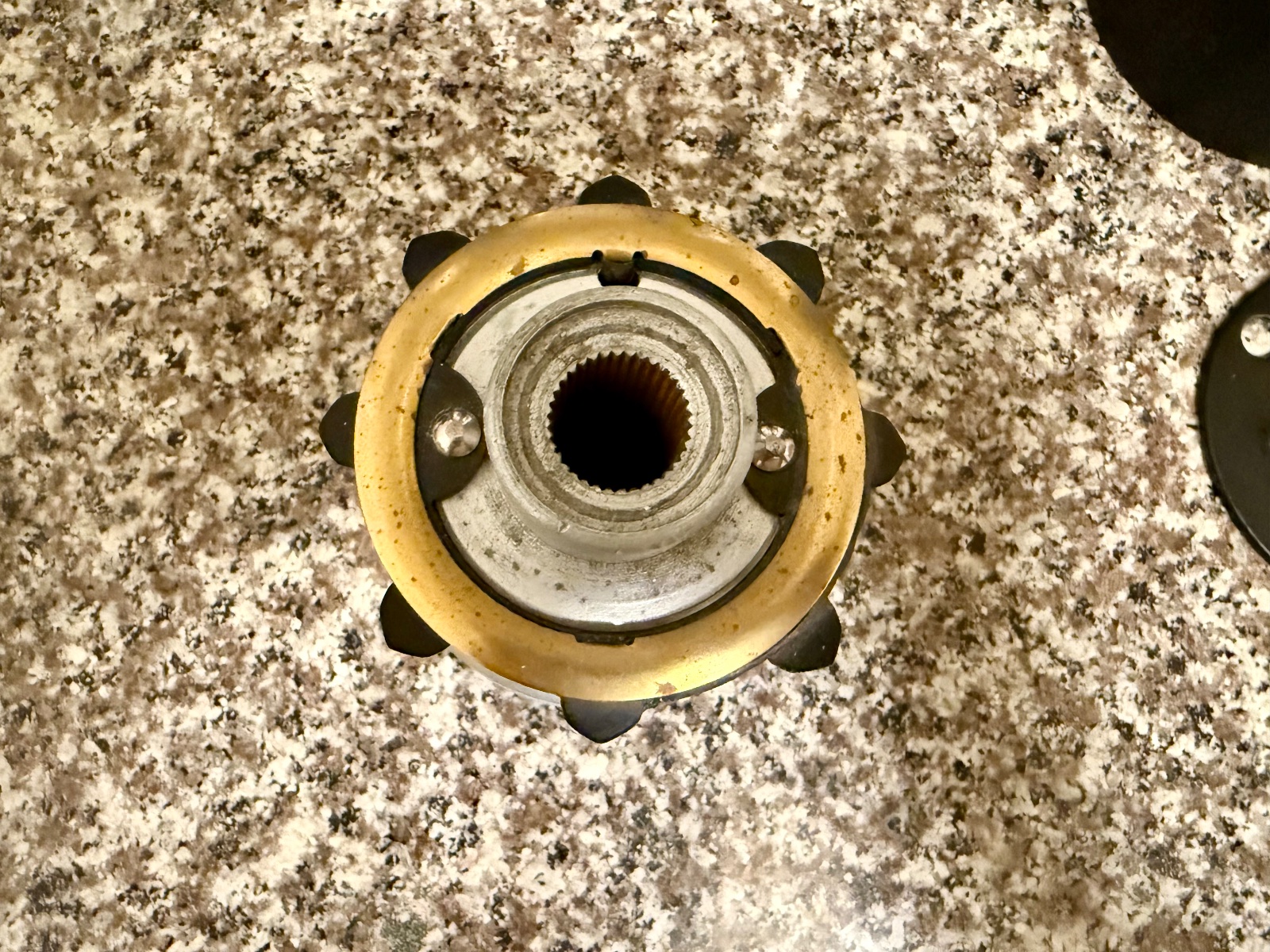 I disassembled all the individual hub parts for picture taking. During reassembly, one of the 8 ears of the horn contact ring snapped off (at bottom of ring). As stated, this is a new non-original contact ring that I presume was 3D printed, thus, the plastic is rather fragile and is not as robust as the original. The ears are just decorative elements and does not affect the functions of the horn contact ring.