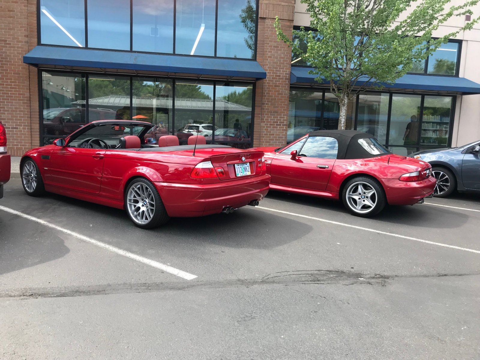 I spent some quality time behind the wheel of our new e46 M3 this weekend. Saturday morning I met my good buddy Dave at Cars and Coffee. He just bought himself a Imola M Roadster for his 60th birthday. It's a local car with 49K miles and great local history. After C&C we took turns driving the ours cars on some great back roads near my house. Sunday, my wife and I took the car to lunch driving out into wine country. Fun couple of days.