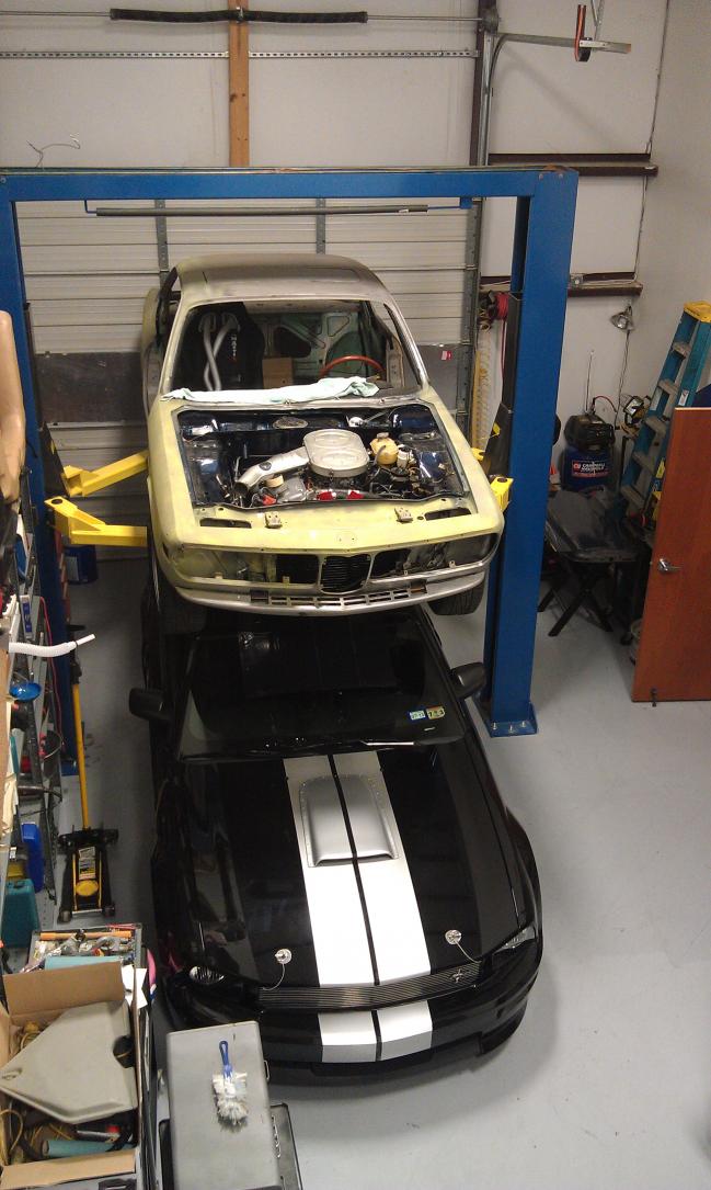 Had to rent out my old "cave" but at a good lease term so I was able to do a little addition to the warehouse- as you can see, parking is tight. By the way, I noticed some folks talking about lift prices- this one's 9000 lb capacity and I bought it used/installed for 1500.00. I did recondition it a little and cleaned it up and it's made in the USA and Canada so I'm not afraid to walk under it