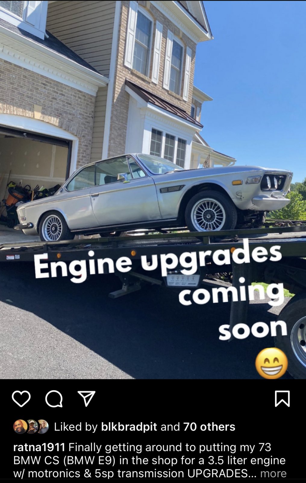 A lot has happened since this last post last year but after buying as many parts as possible from members in the E9 forums, in early Sept 2022 I put my car in the shop to change to a bigger engine 3.5 and manual 5sp transmission. View attachment 149425
