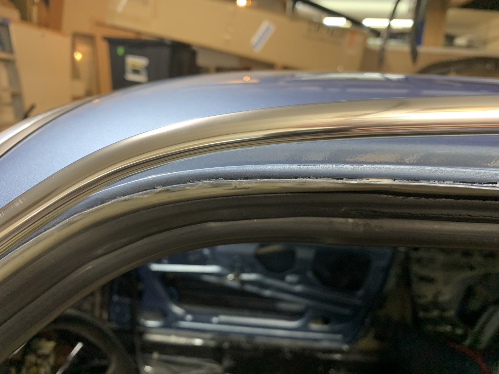 There are 2 "lips" of sheet metal that come together under the vertical rail. On my car, these were sometimes nicely tucked together and sometimes pulled apart a bit. No idea why. But someone had added some seam sealer there which ensured to keep them apart. You want to make sure that this filler is first removed and that those two "lips" are tight together. I had to use a hammer to bring the bottom one right up to match the top one. Obviously, you want to do that before you start installing the trim