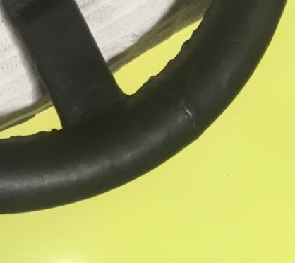Hence the confusion. What violent event occurred between pic #1 and pic#2 that caused the leather to crack and split at the seam? Do you really feel that pic #2 represents a wheel in excellent condition? I know that you don’t care, but my question is genuine.