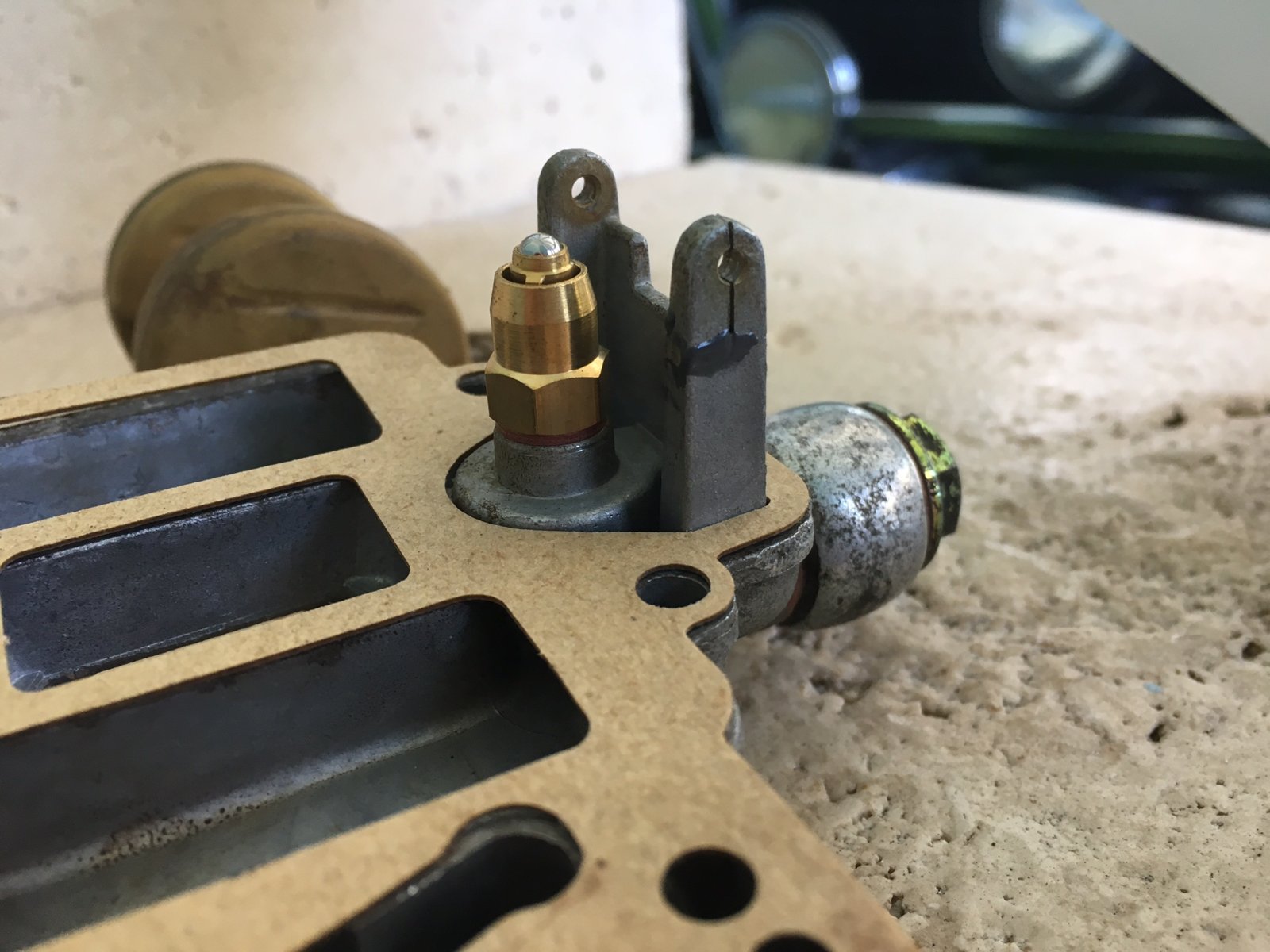 With the pump working I was able to find some fuel leaks, one of which was raw fuel pouring out of the venturis on the carb closest to the firewall. I removed the top and re-adjusted the float level. It was sufficiently different than expected so I decided to check and adjust all three floats. This went fine, but on the final carb the float post broke while removing the float pin. Fortunately, I had a spare top that was un-damaged so I threw it in the vapor hone and transferred the needle valve and float assembly it was soon adjusted.