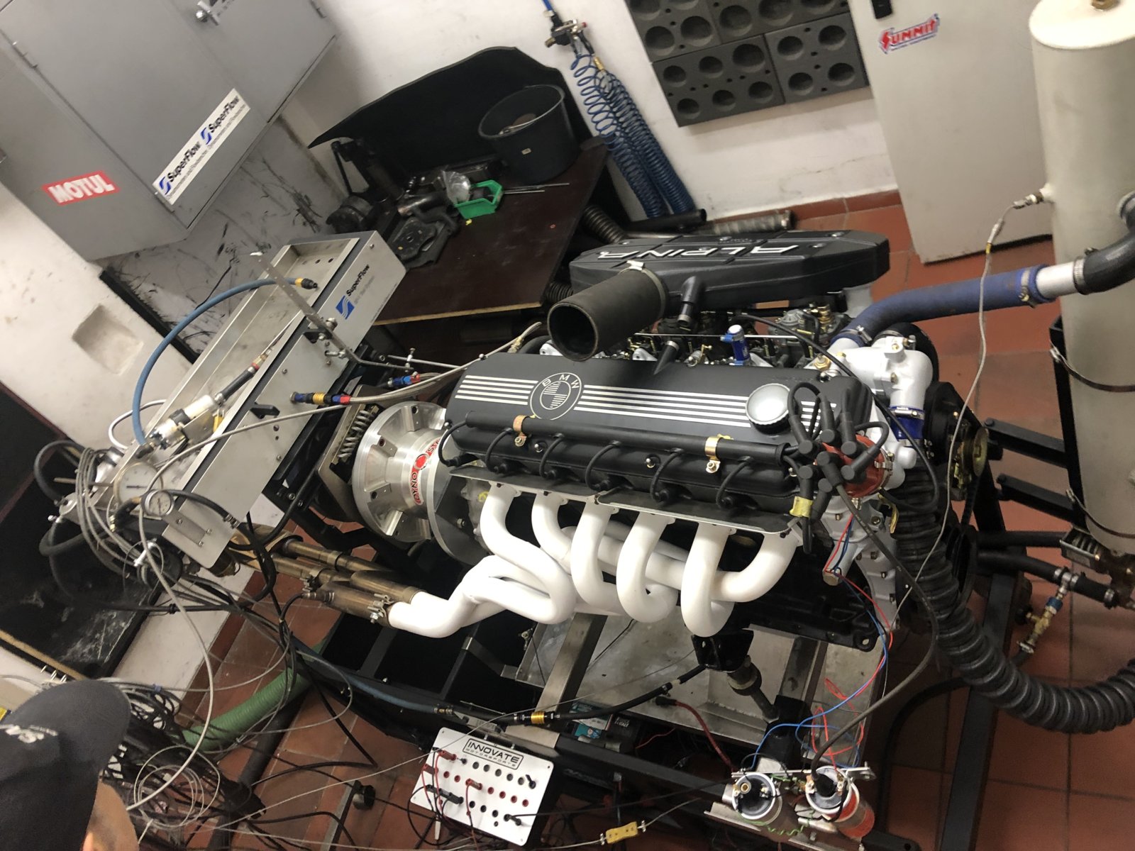 The tuner (Uli from Ital Auto) said the carbs are very sensitive but he has them dialed in now and sounding great! The engine has about 2 hours of running in time so far and will remain at these settings until its completed its run in time in the car. Final tuning will be done on the rolling road.