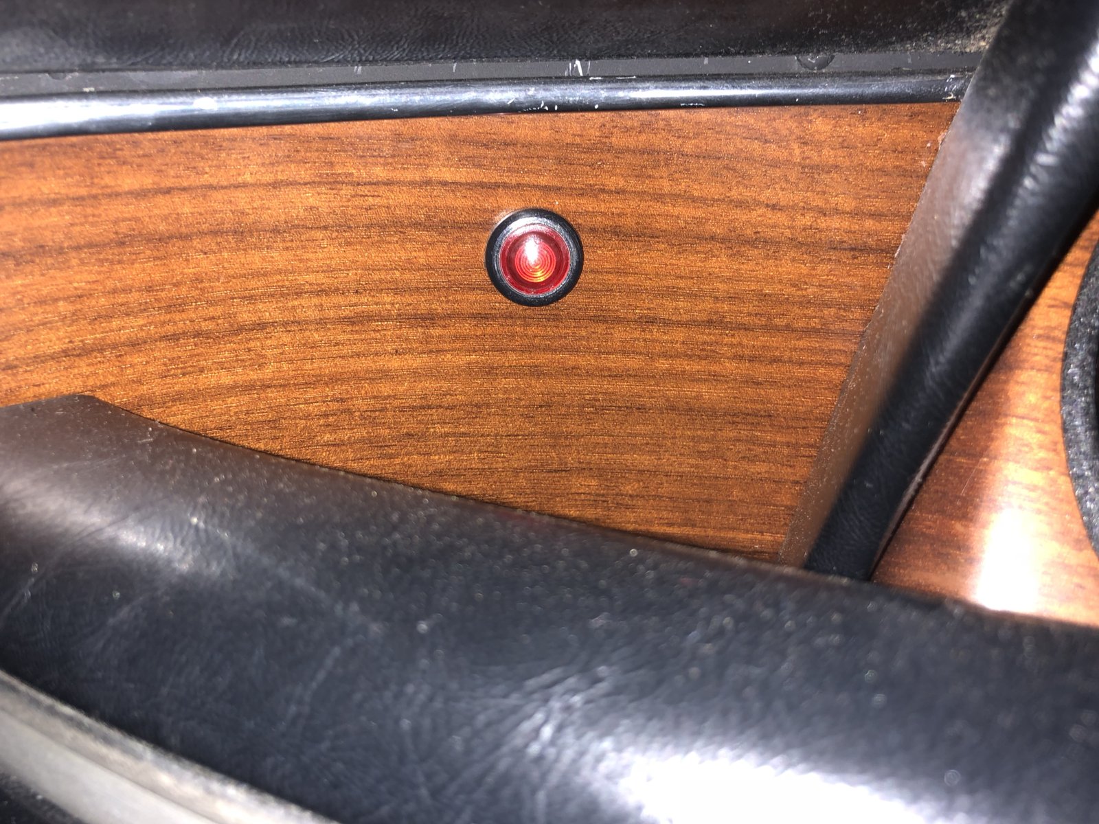 While I don't love that it is pierced right through the beautiful wood veneer, I think it is a great idea. A more contemporary car would have a symbol on the dash that illuminates when the fogs are on. Good stuff.Anyone else have one of these? It's wired to the fog light circuit, lights up when the fog lights are on.