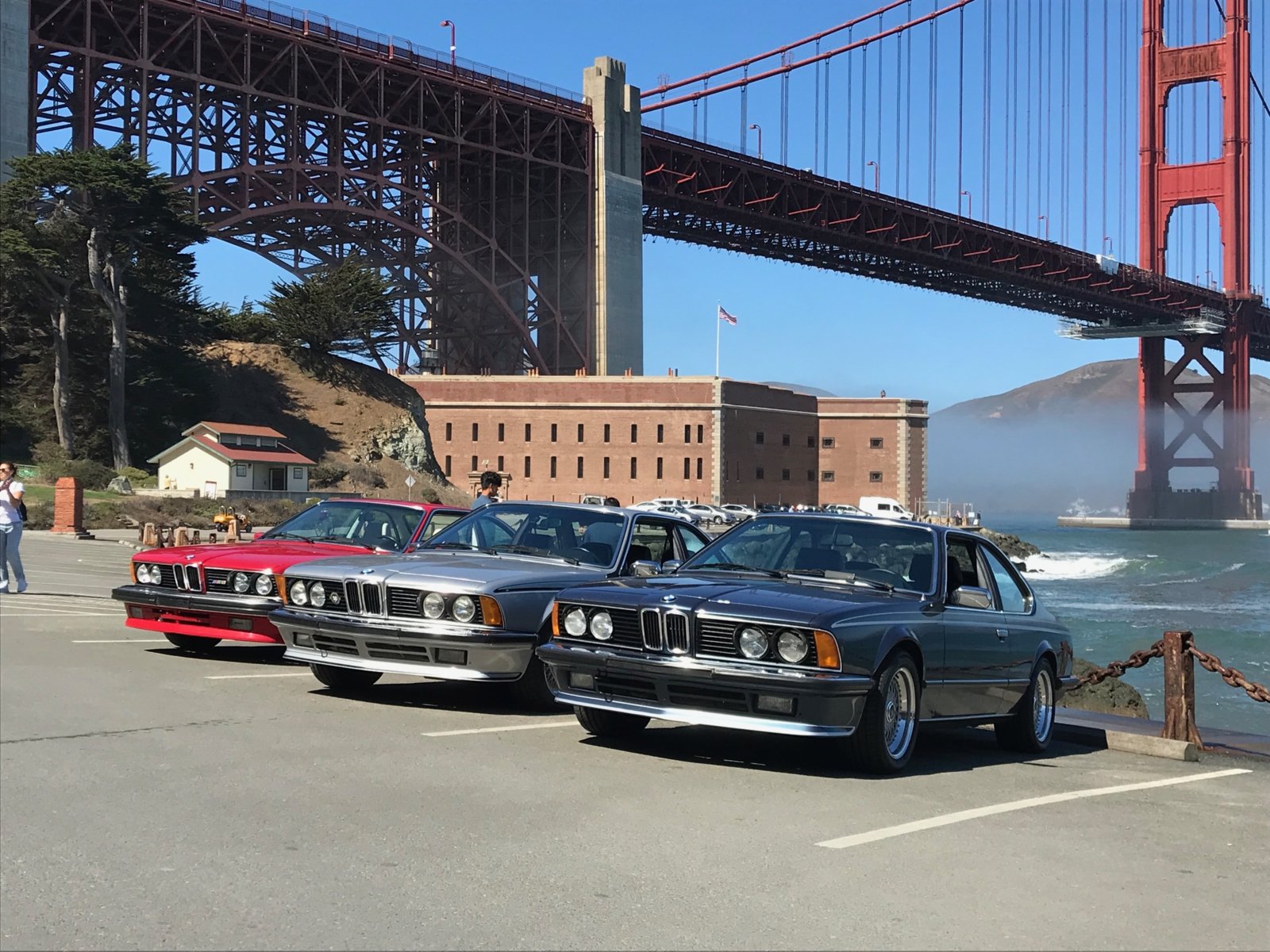 Four of us drove our e24s from the Portland area down to Monterey for the Pacific SharkFest last weekend. We took two days to drive down on 101 and 1, it was well worth it. There ended up being 30 cars and it was a fun filled weekend. They picked my car to be on display out on the pier next where we ate dinner Saturday night, the organizer seemed to love that it was a euro and that it was Arktisblau - a fairly rare color. My pick would have been between the early HennaRot euro and a beautiful euro M6. There were some really great cars and an even greater group of people.