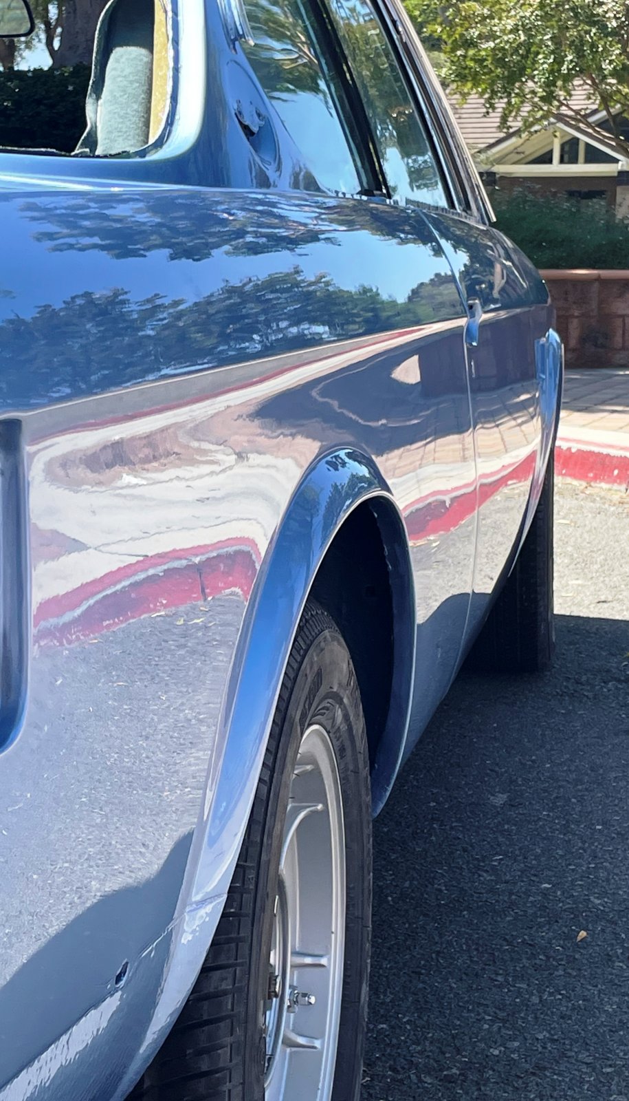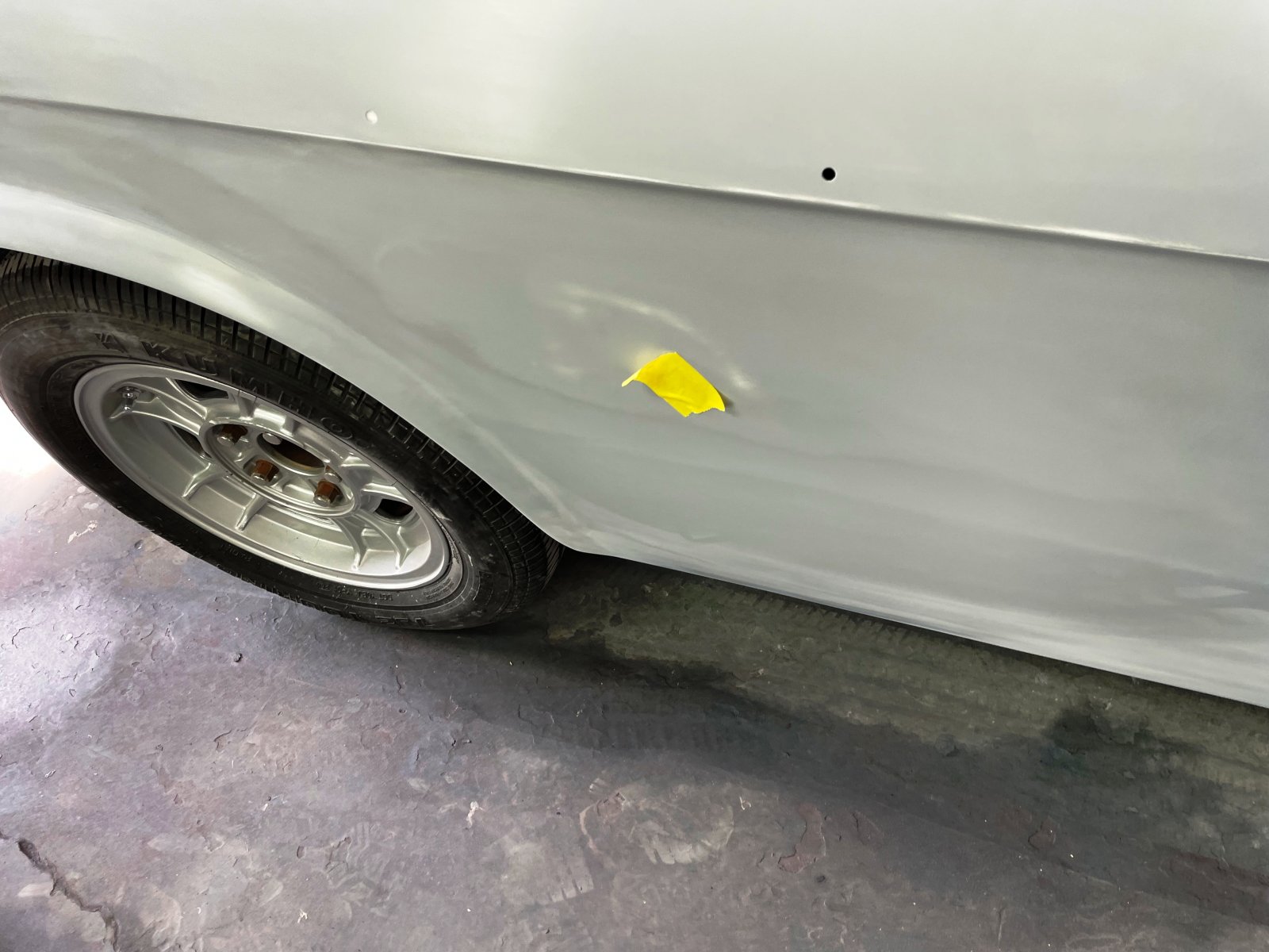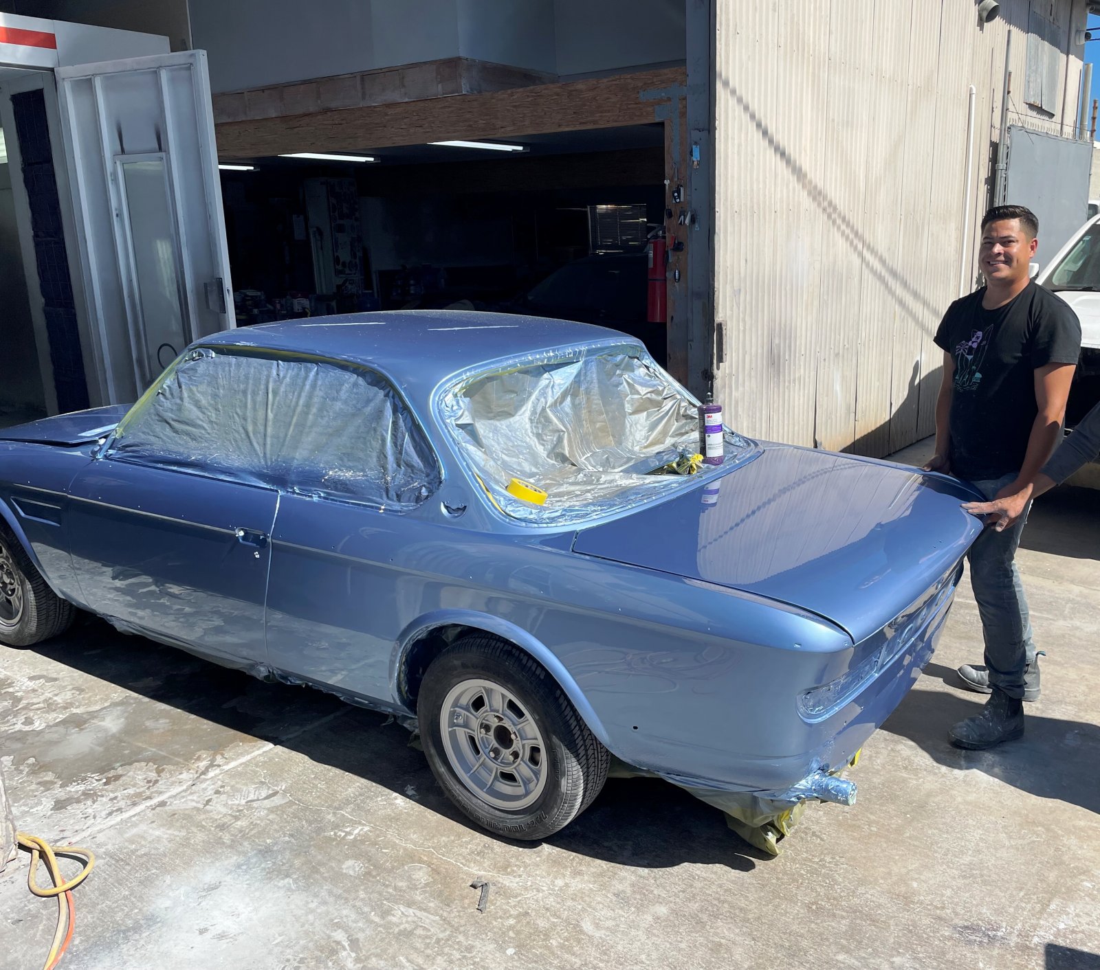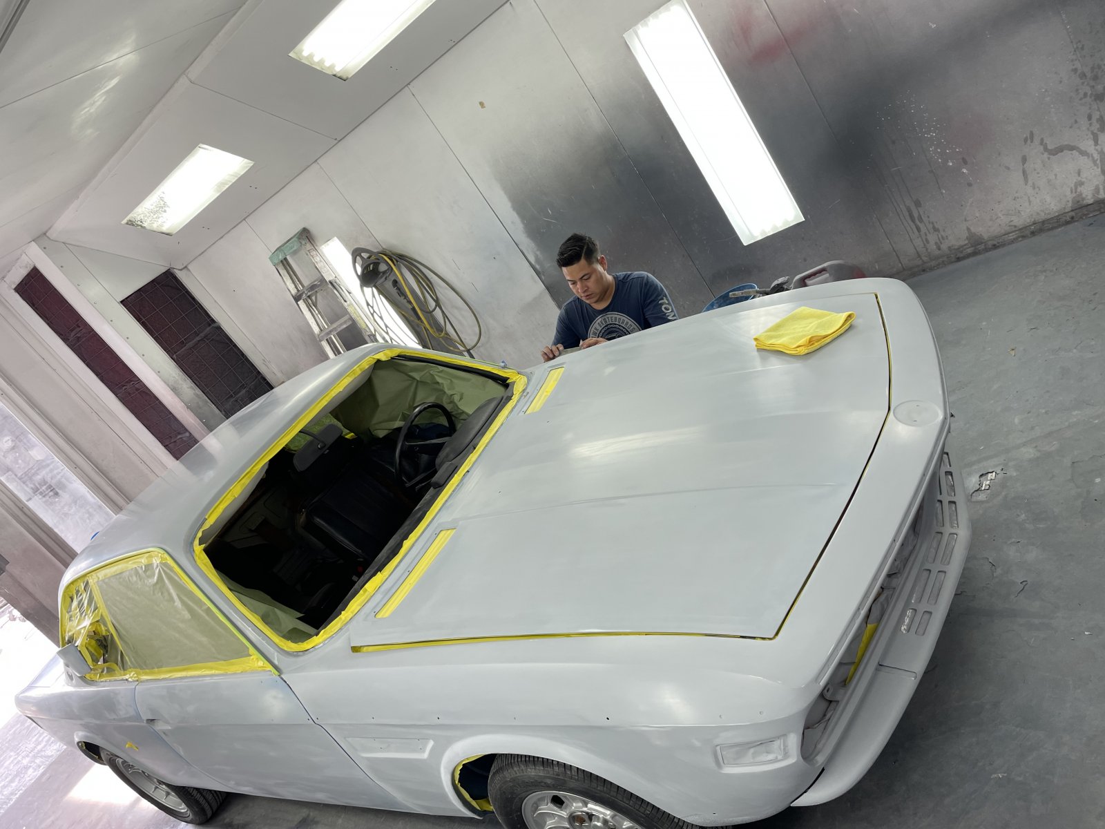 Woo Hoo! It is out of the booth and buffed. 16 hours after third coat of clear when on, color sanding and buffing began. This is majority of buffing it will need. I will do more touch up with 3M 3000 grit right before the beltline trim goes back on. For that assembly, I want it to cure for a few more weeks. Enrique is both the painter and the polisher (last photo or the right). He is 24, a super nice guy and immensely talented.