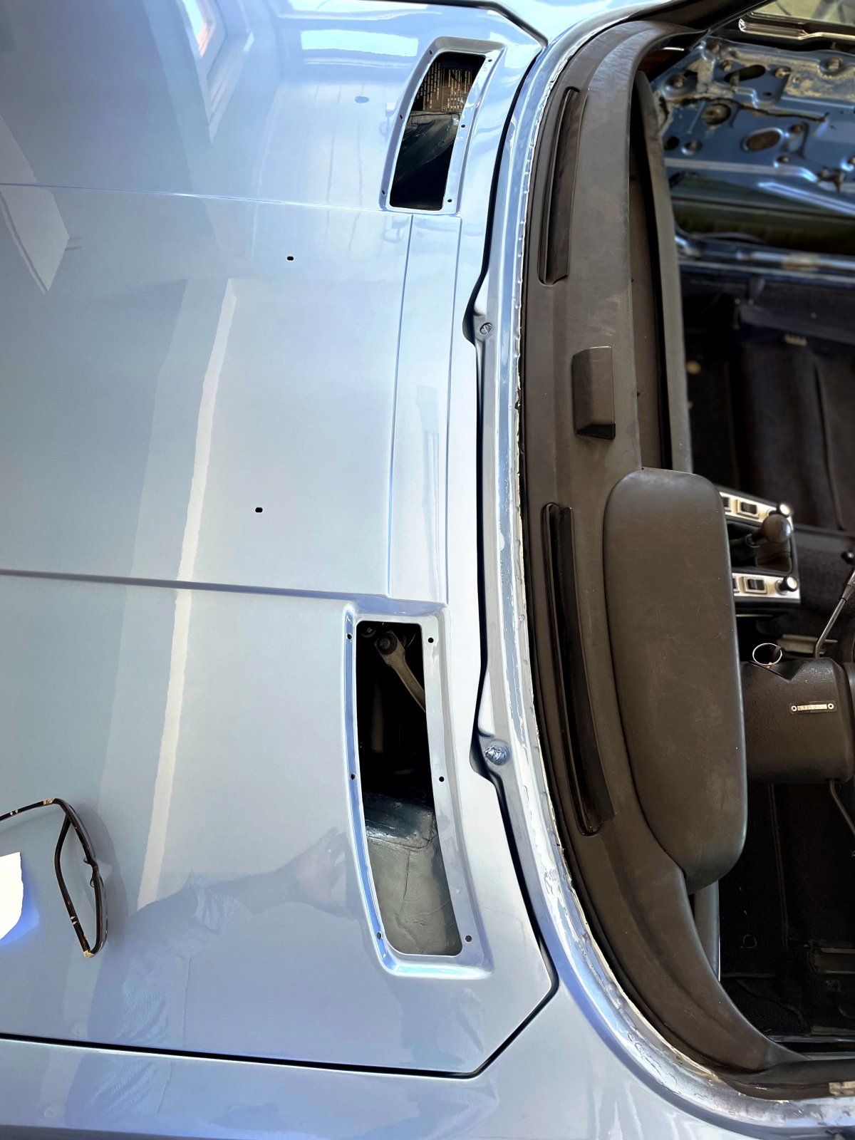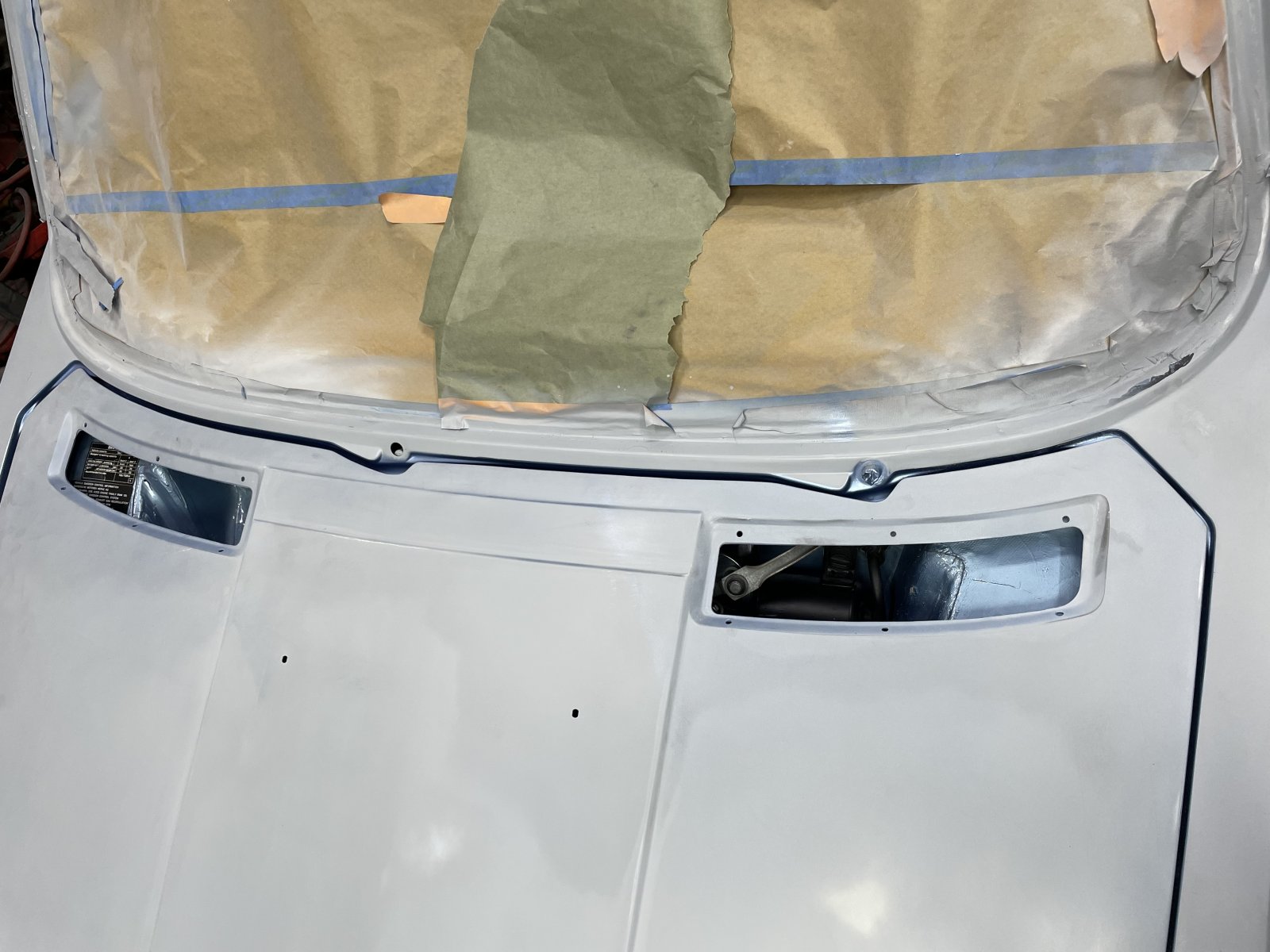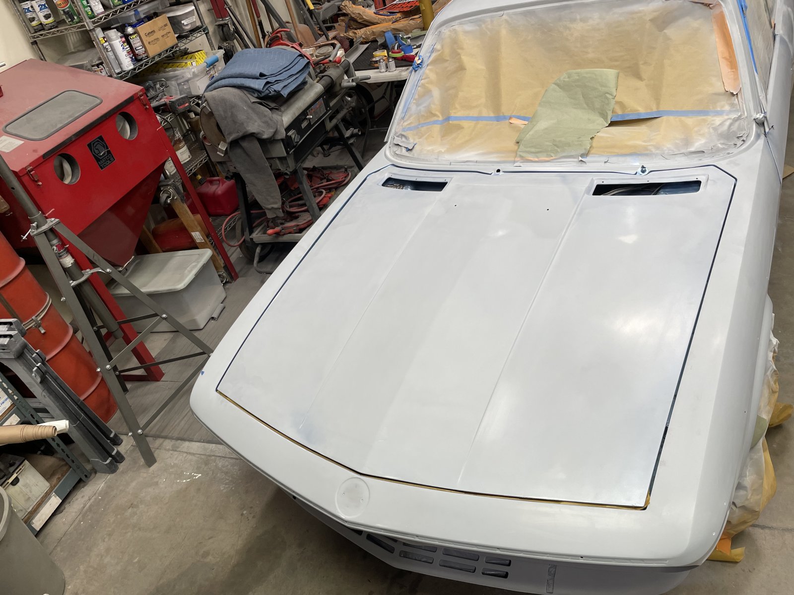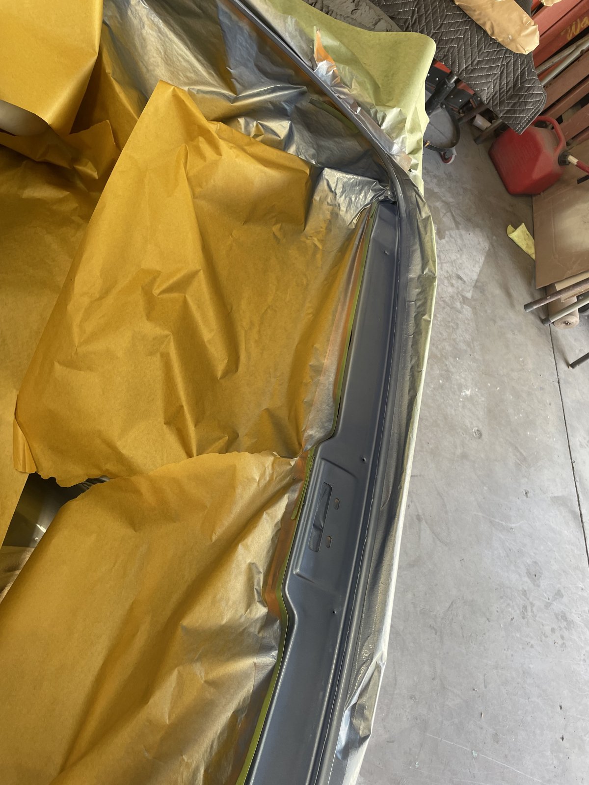 Thanks Bmachine! I don't know about that perfectionist thing.......here is an example of a mistake. When I shot the trunk gutter last week, I did not mask the 'lip' for the weatherstripping on the inside correctly. It got sprayed with primer and is an exposed surface. So this morning was spent preping and re-masking the trunk to put down the base Fjord and clear coat around this inside edge. Just waiting for the clear coat to kick tonight and then I can continue with the latch assy and torsion bar.