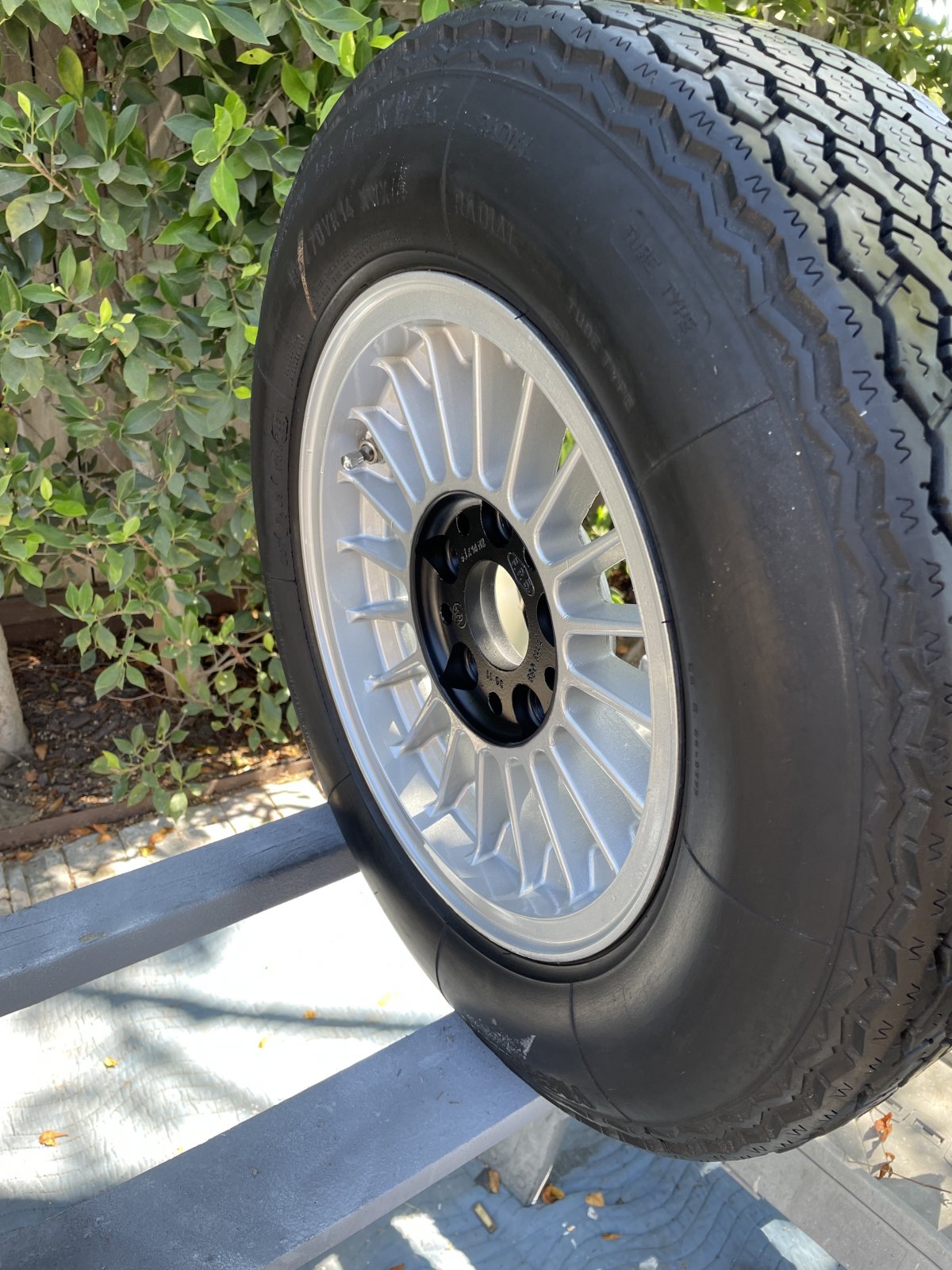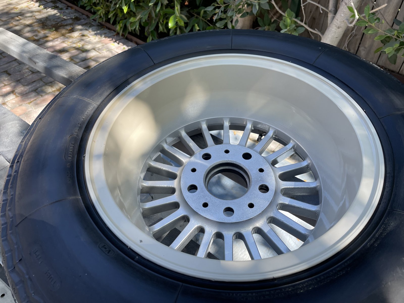 -spare tire refinishing, including deliberate sloppy overspray on the inner black center